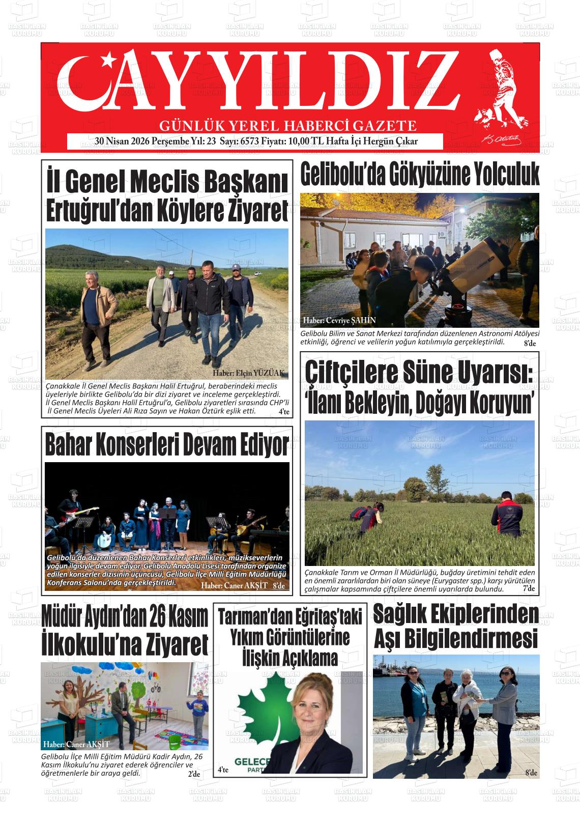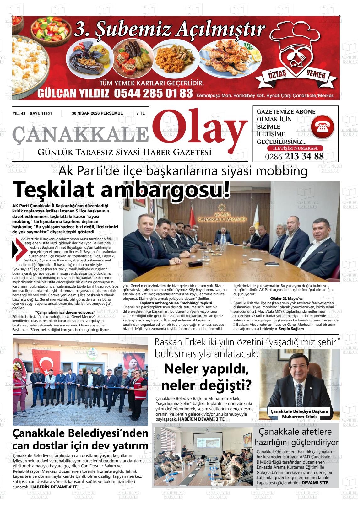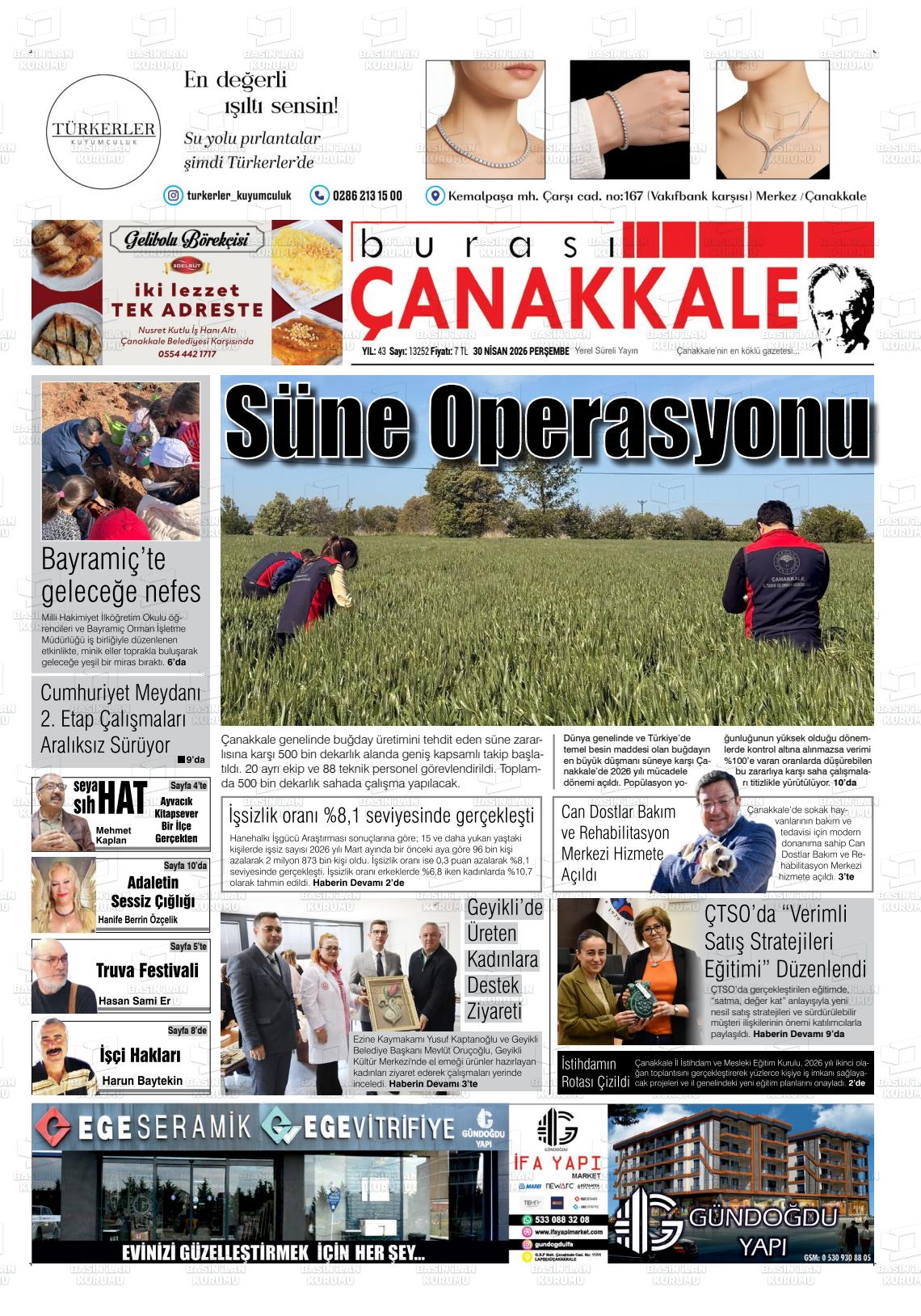 Çanakkale Yerel Gazeteleri 30 Nisan 2026, Perşembe Günü Manşeti