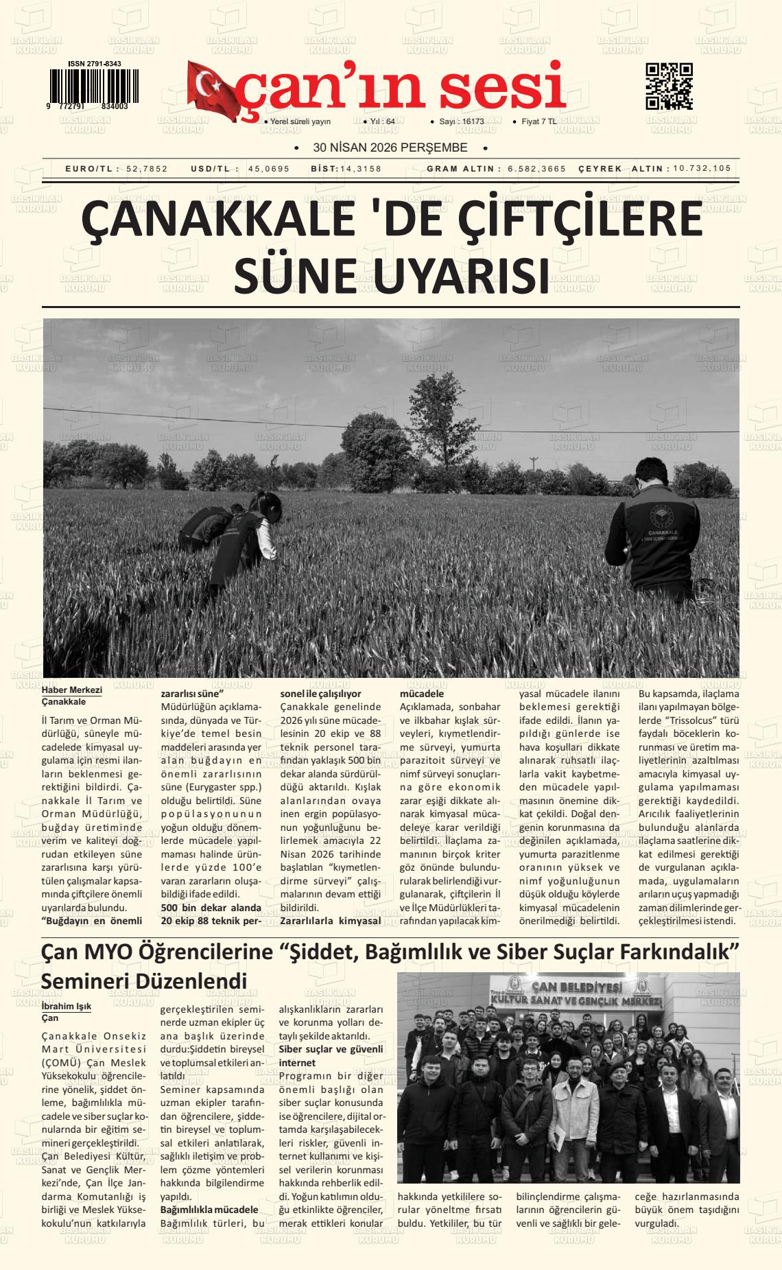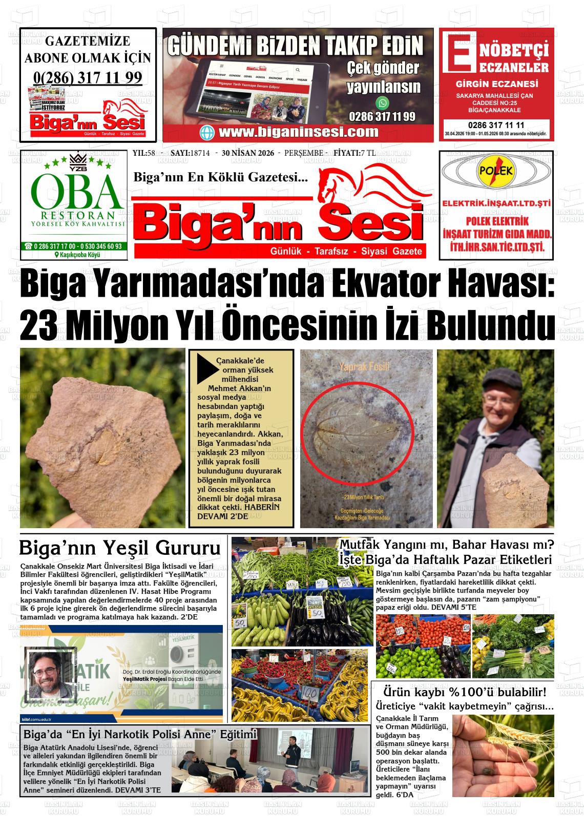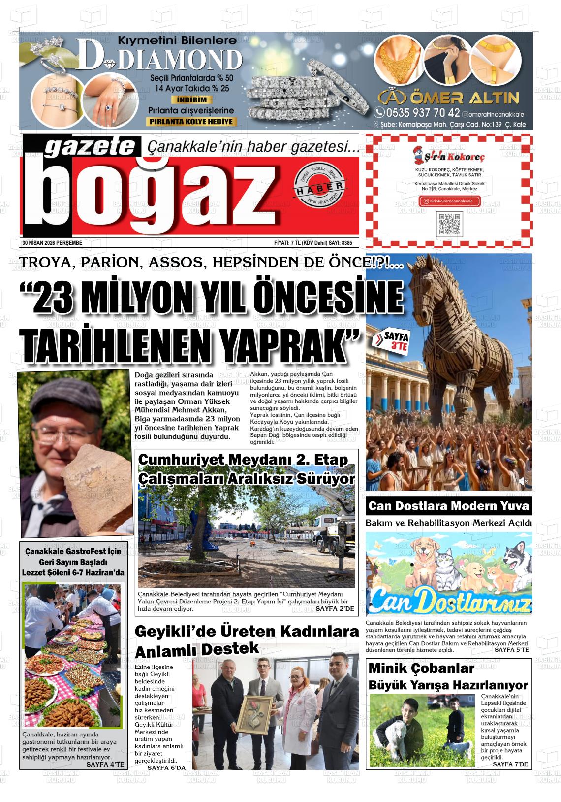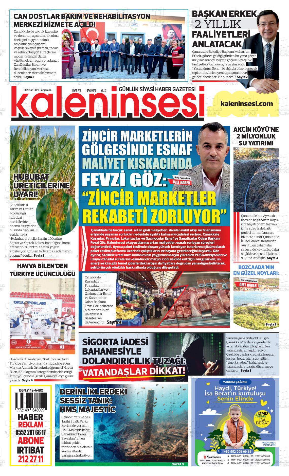 Çanakkale Yerel Gazeteleri 30 Nisan 2026, Perşembe Günü Manşeti