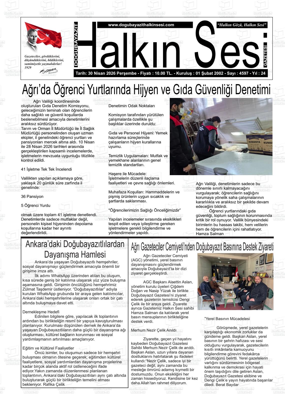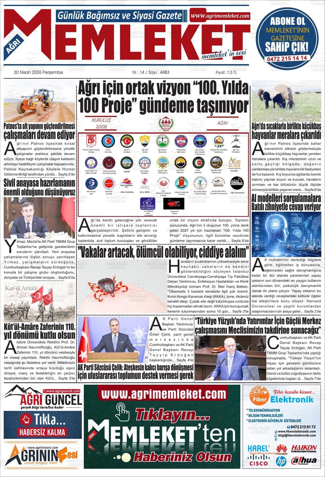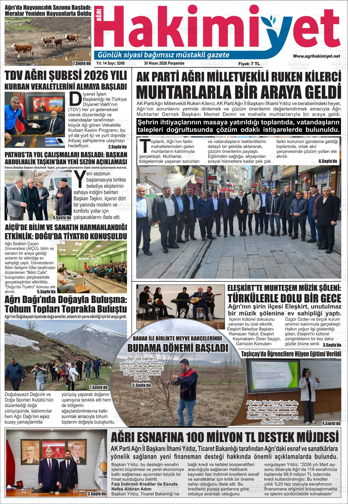 Ağrı Yerel Gazeteleri 30 Nisan 2026, Perşembe Günü Manşeti