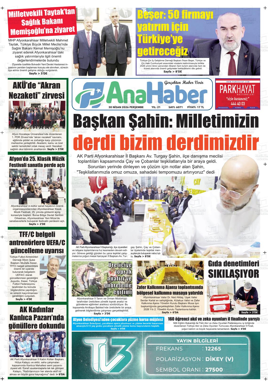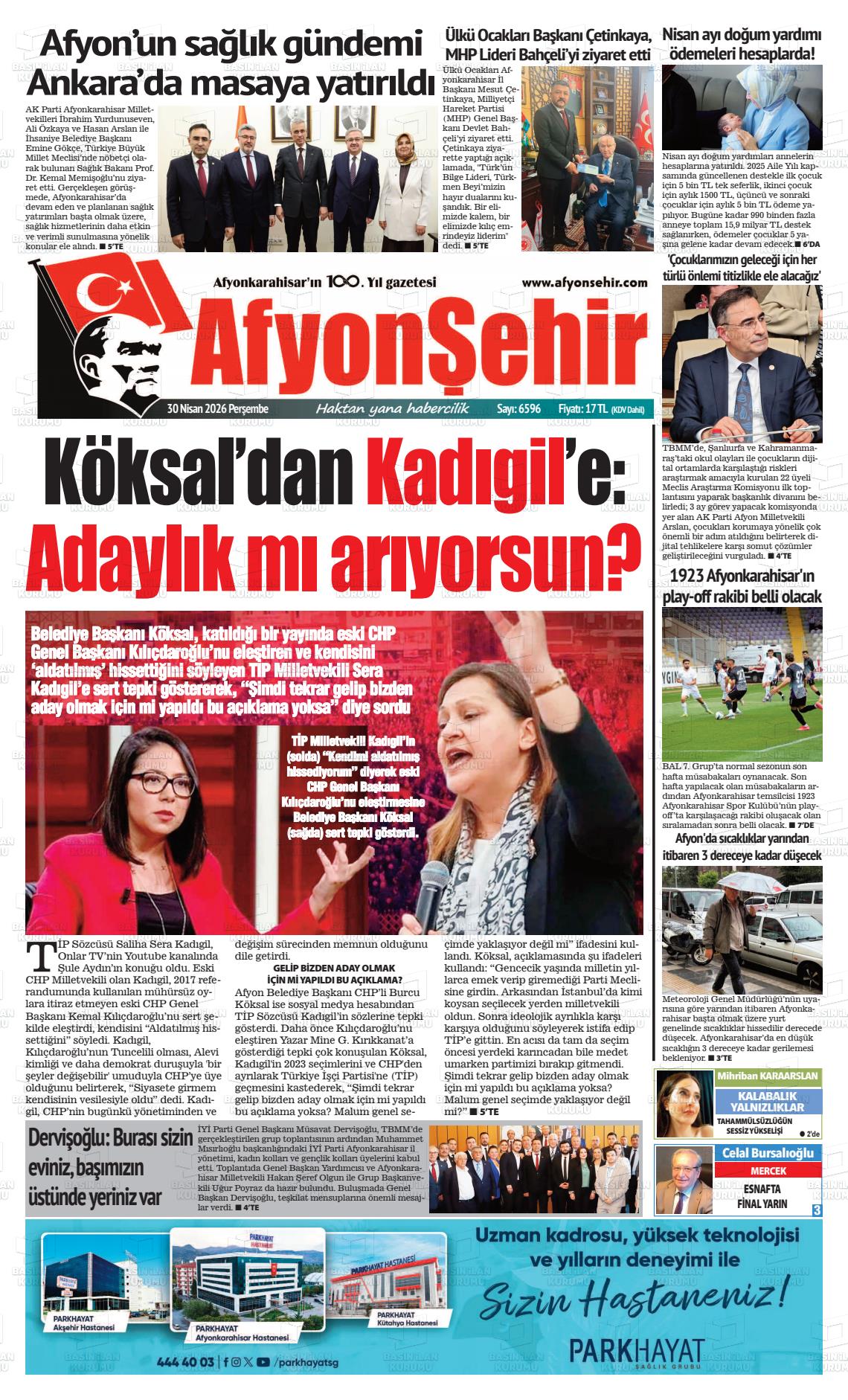 Afyonkarahİsar Yerel Gazeteleri 30 Nisan 2026, Perşembe Günü Manşeti