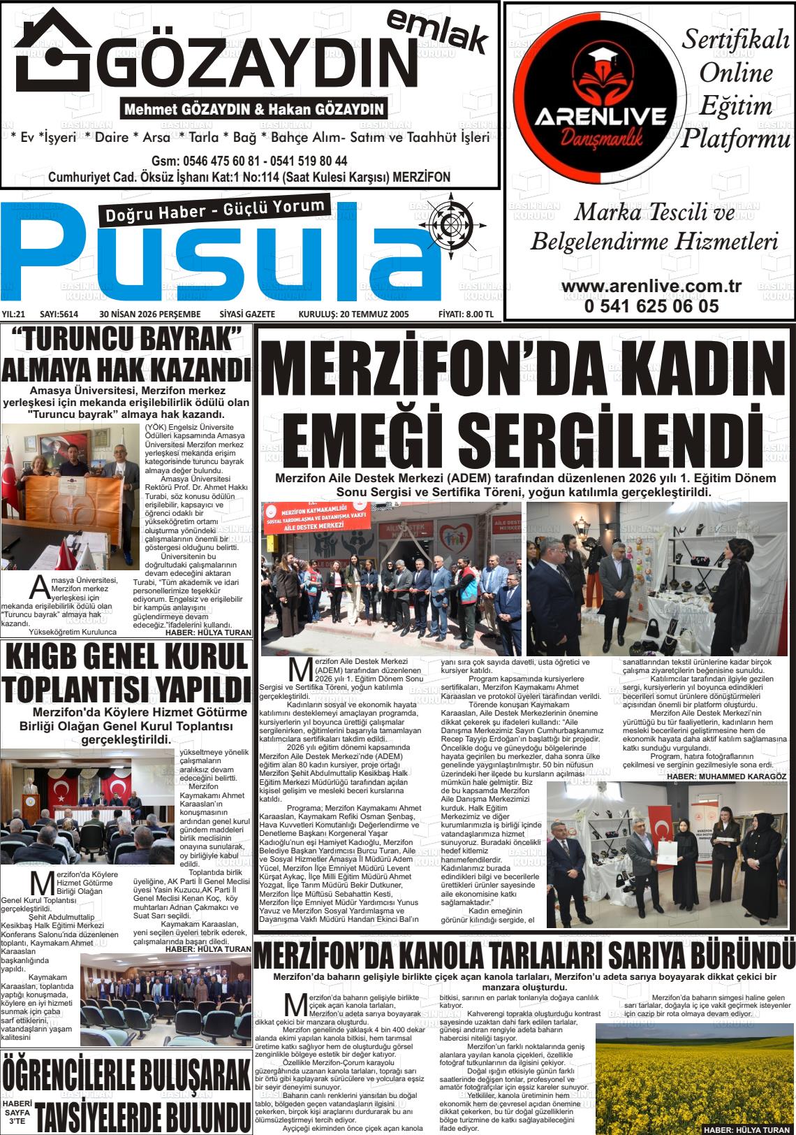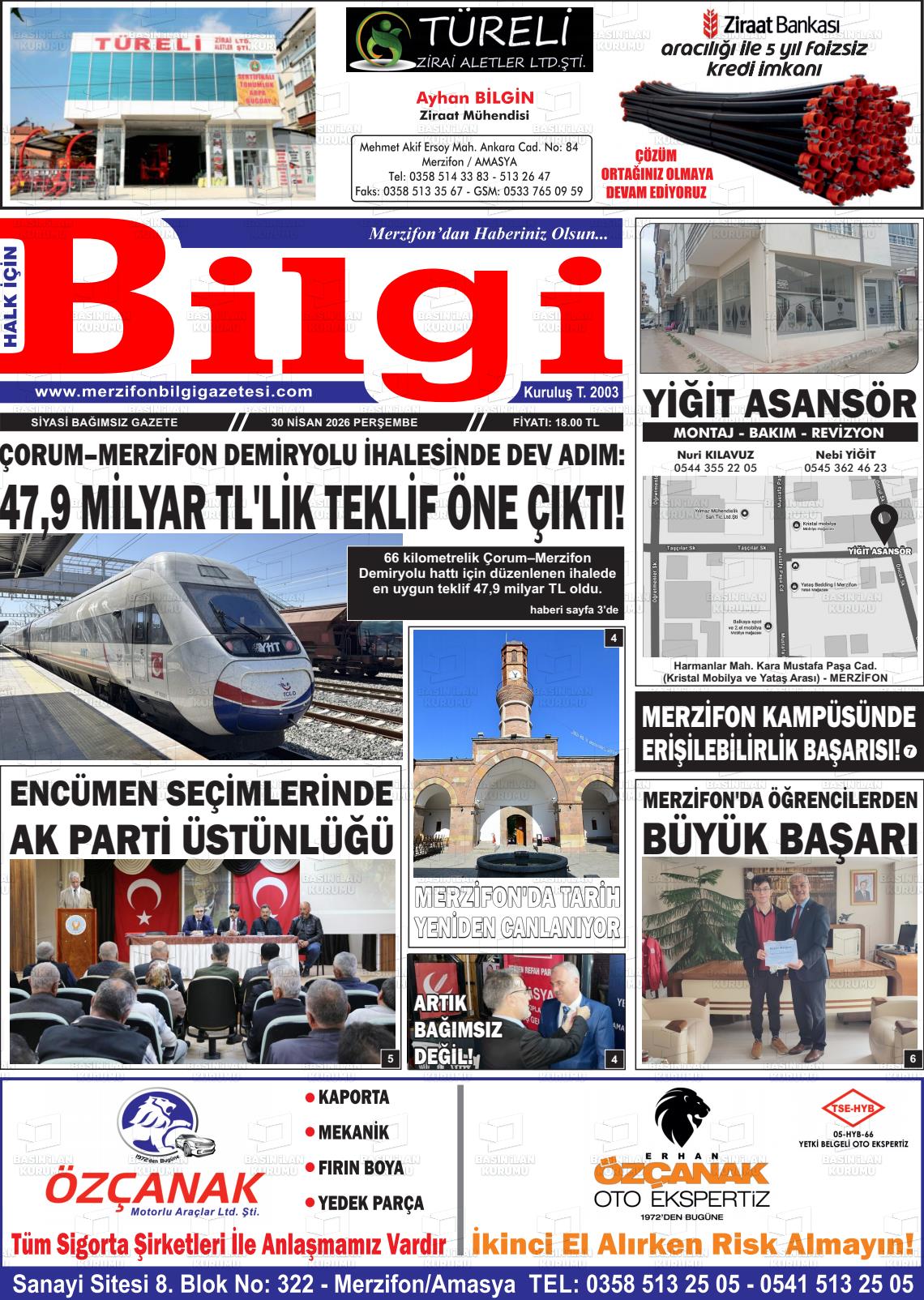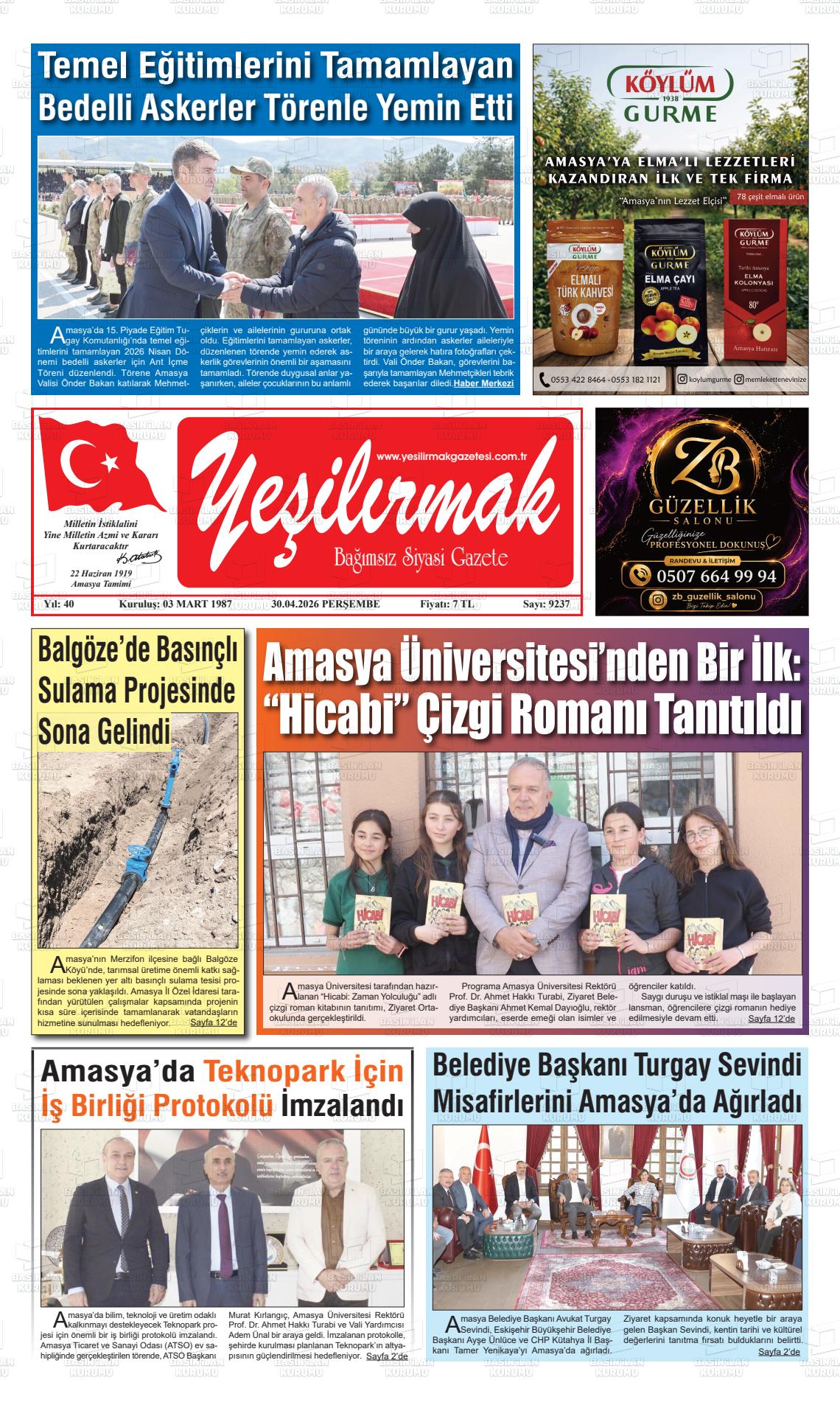 Amasya Yerel Gazeteleri 30 Nisan 2026, Perşembe Günü Manşeti