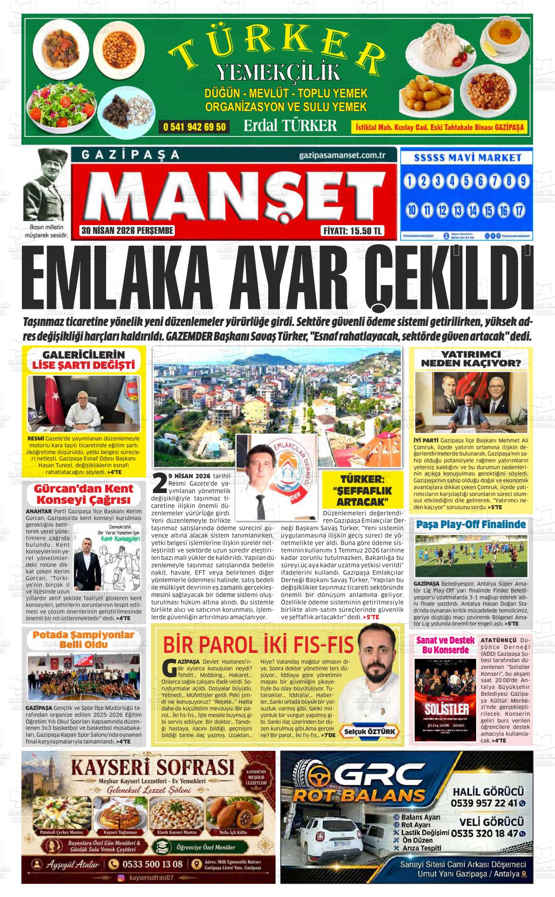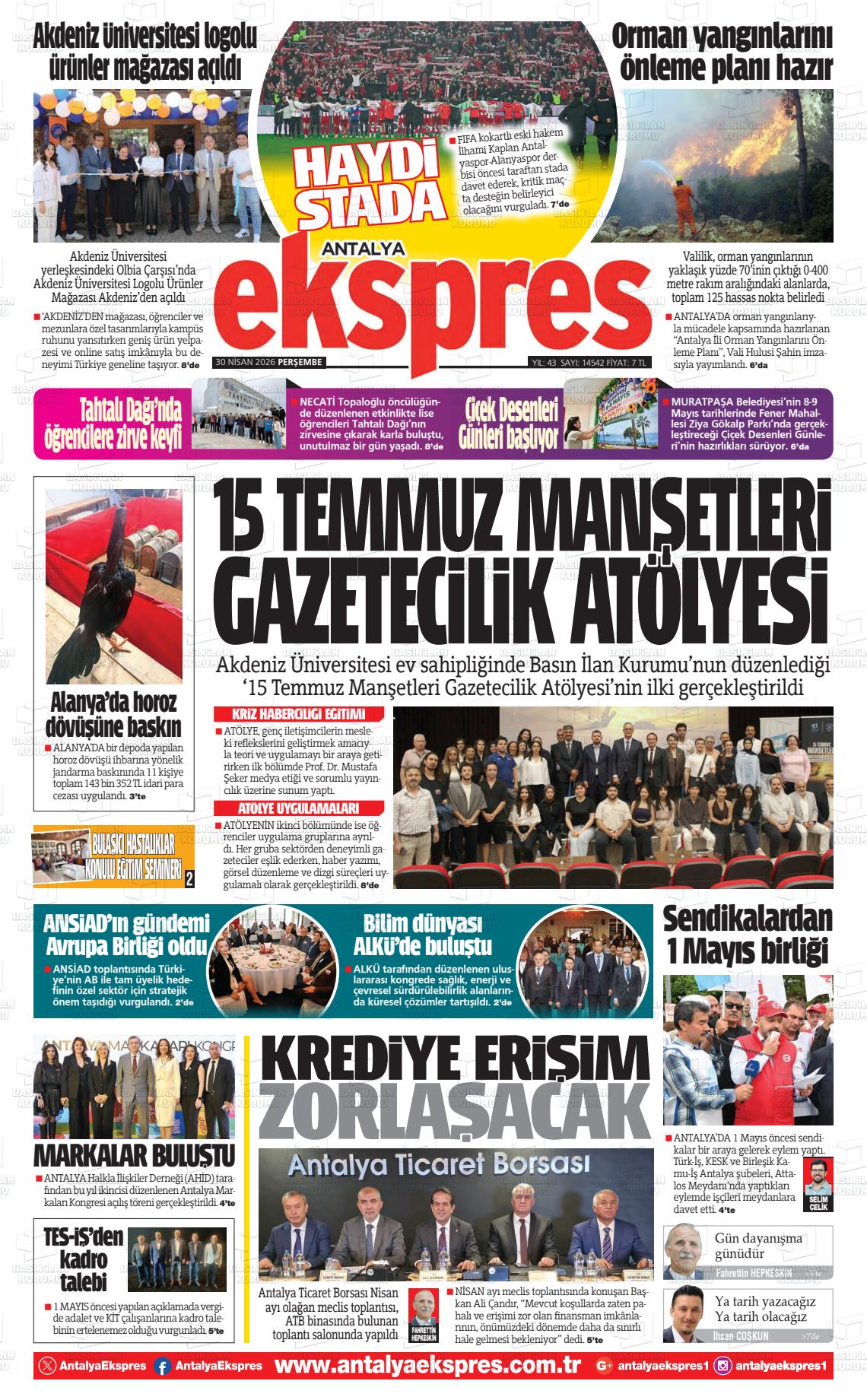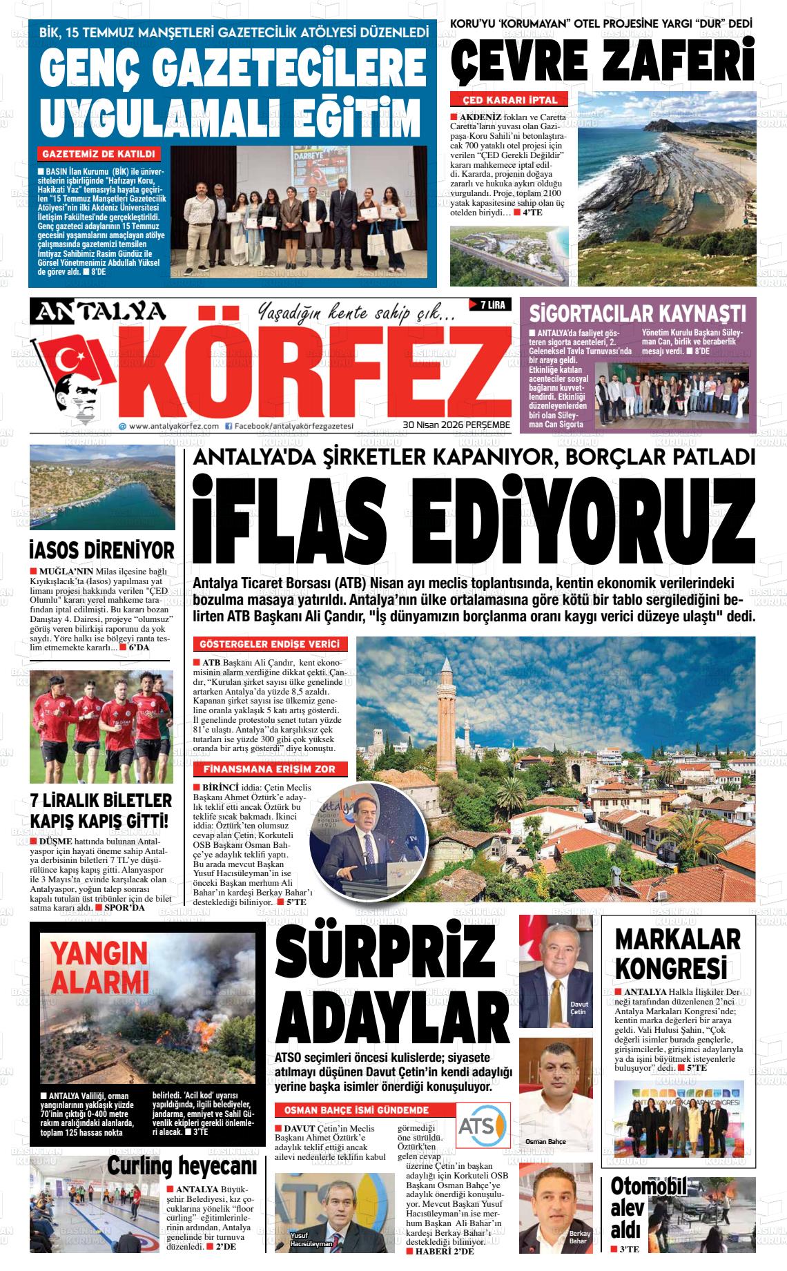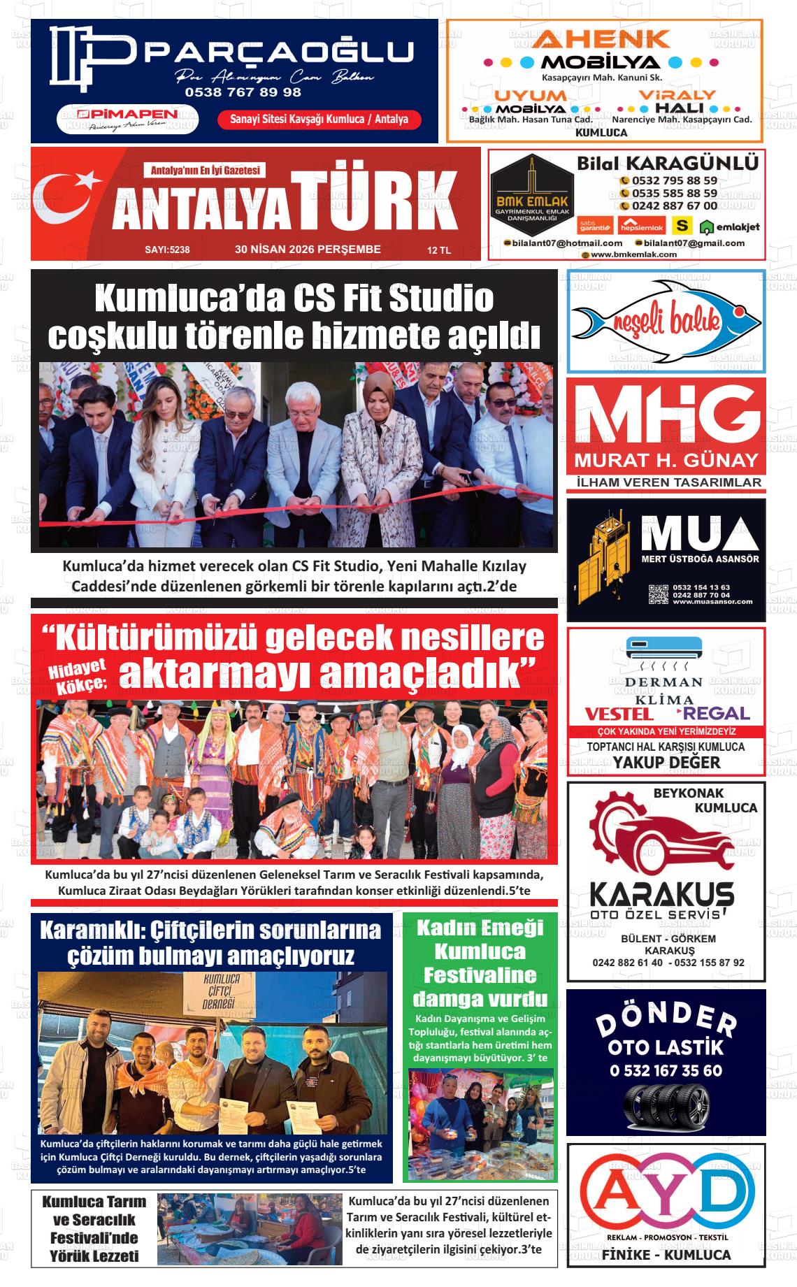 Antalya Yerel Gazeteleri 30 Nisan 2026, Perşembe Günü Manşeti