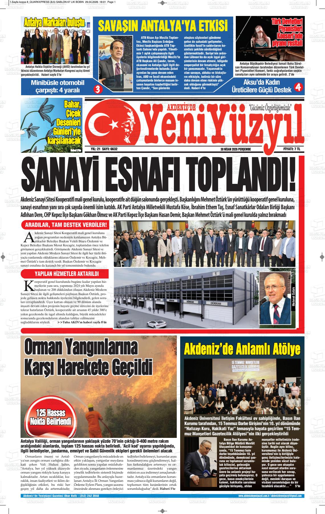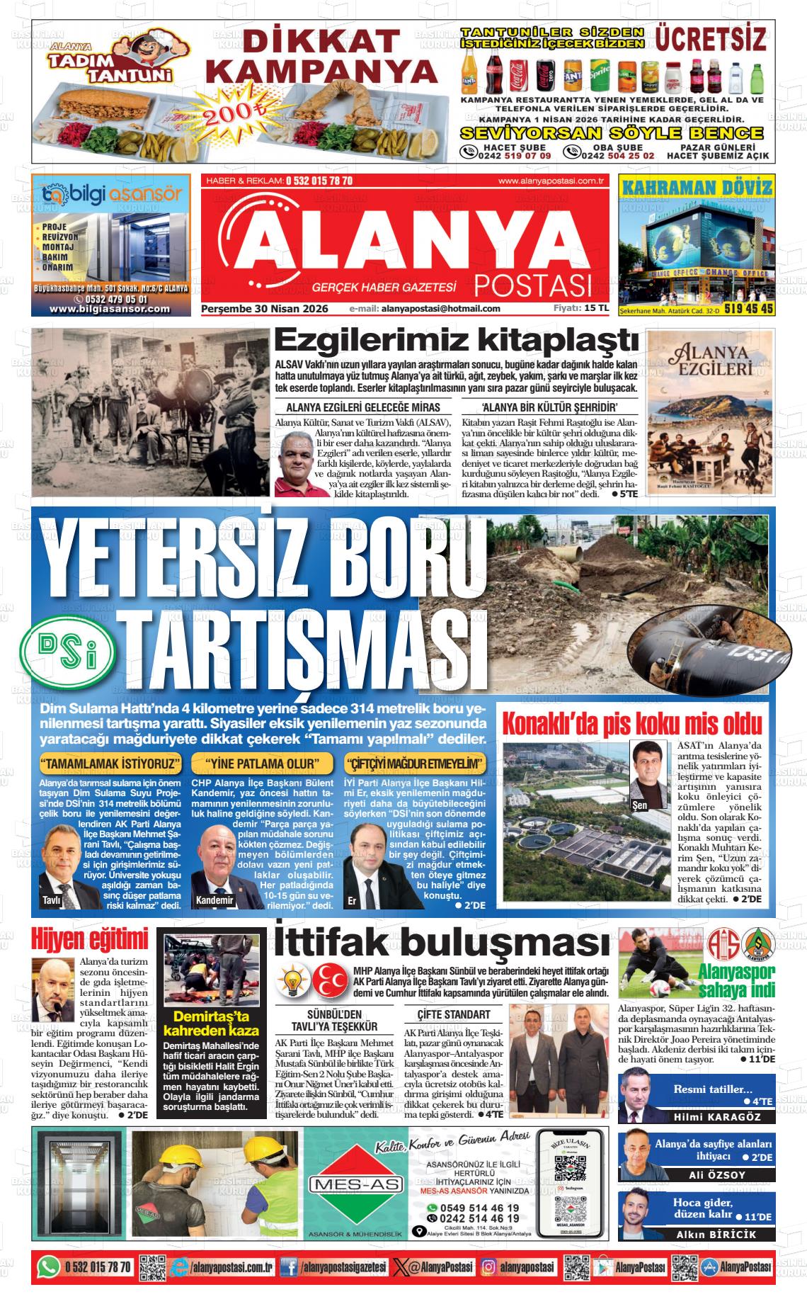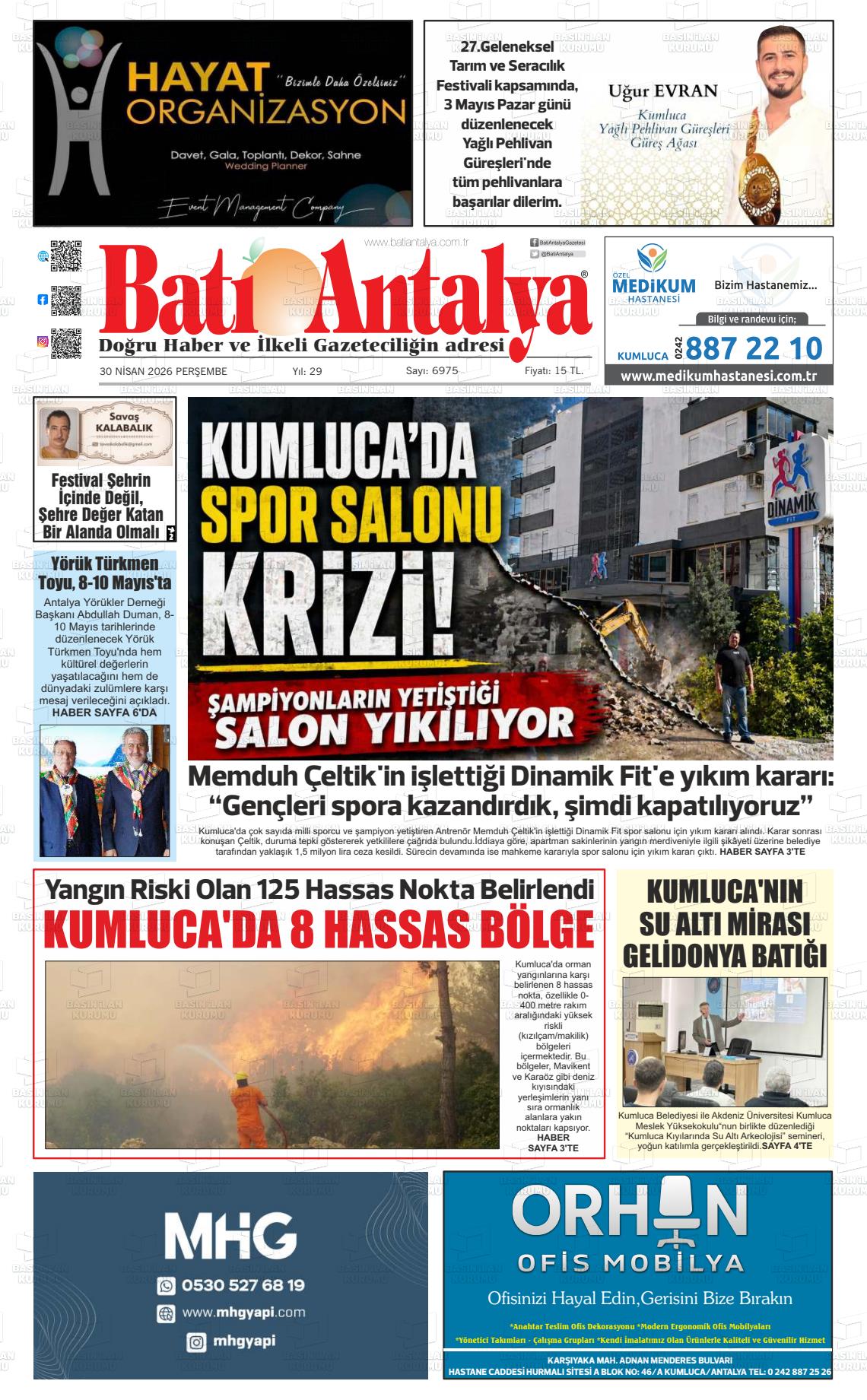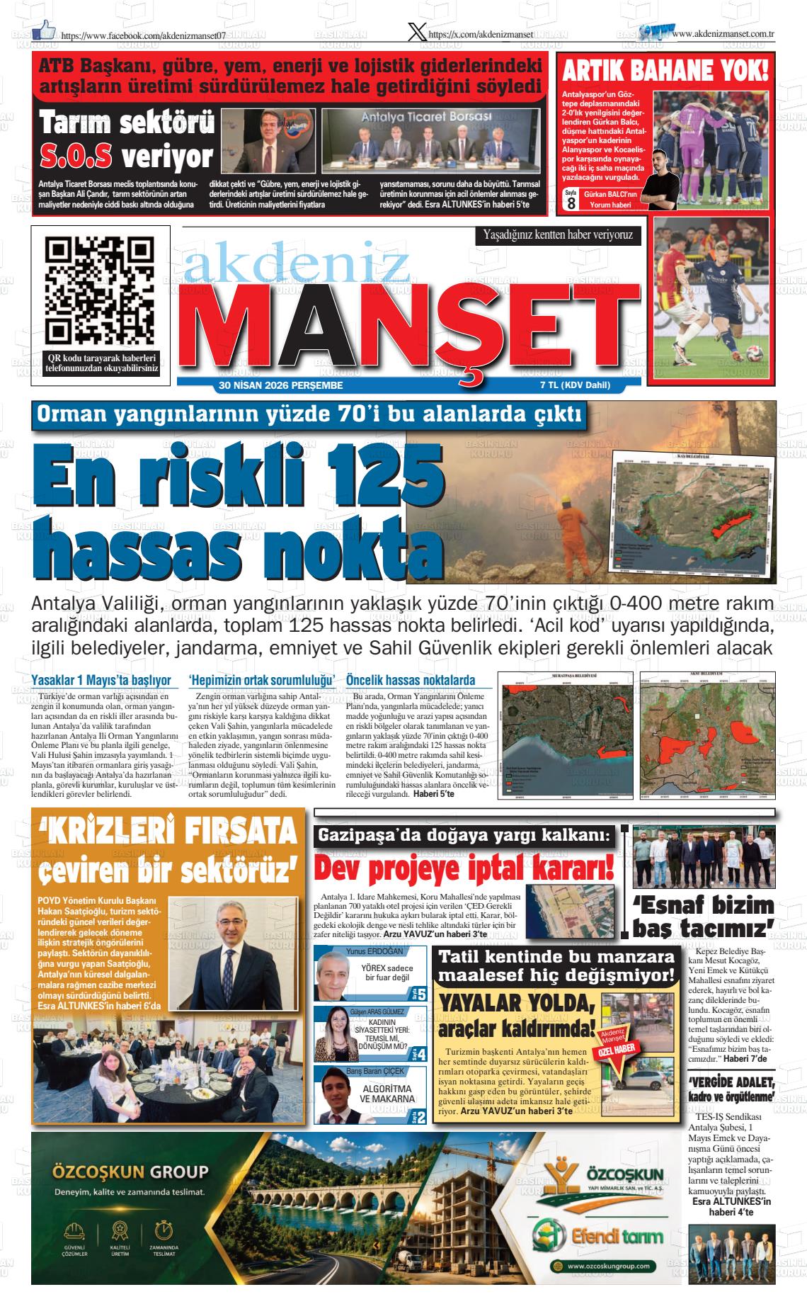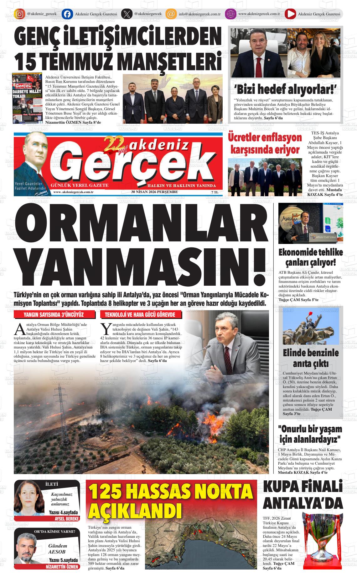 Antalya Yerel Gazeteleri 30 Nisan 2026, Perşembe Günü Manşeti
