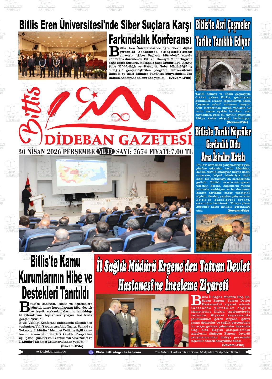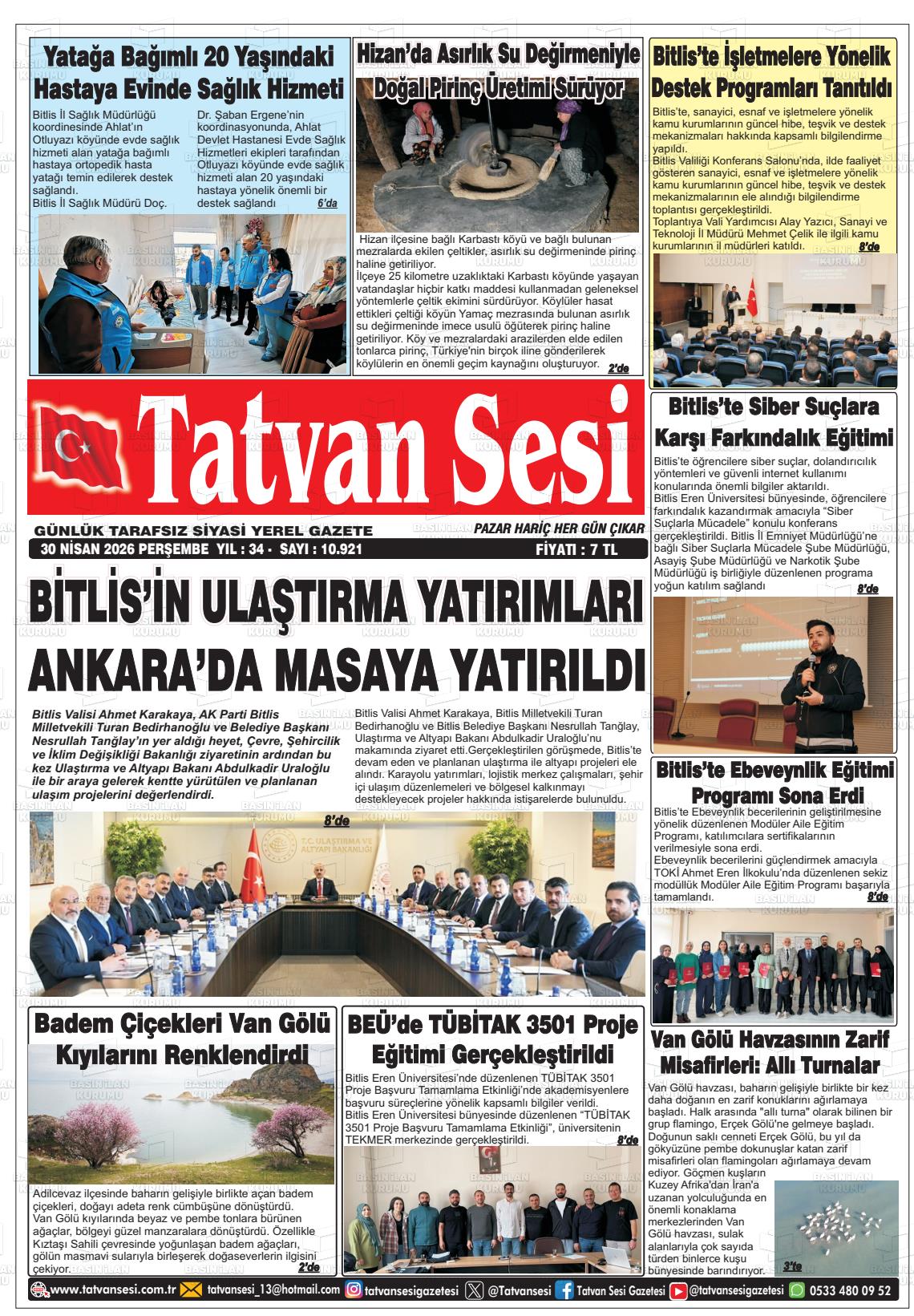 Bİtlİs Yerel Gazeteleri 30 Nisan 2026, Perşembe Günü Manşeti