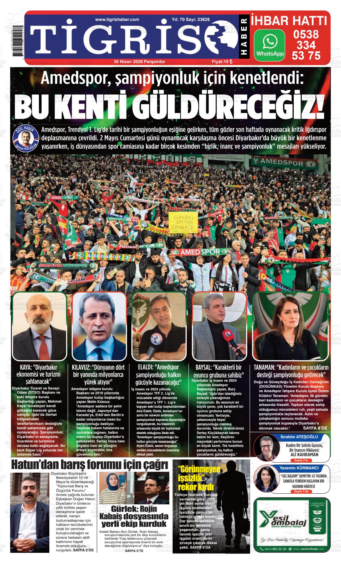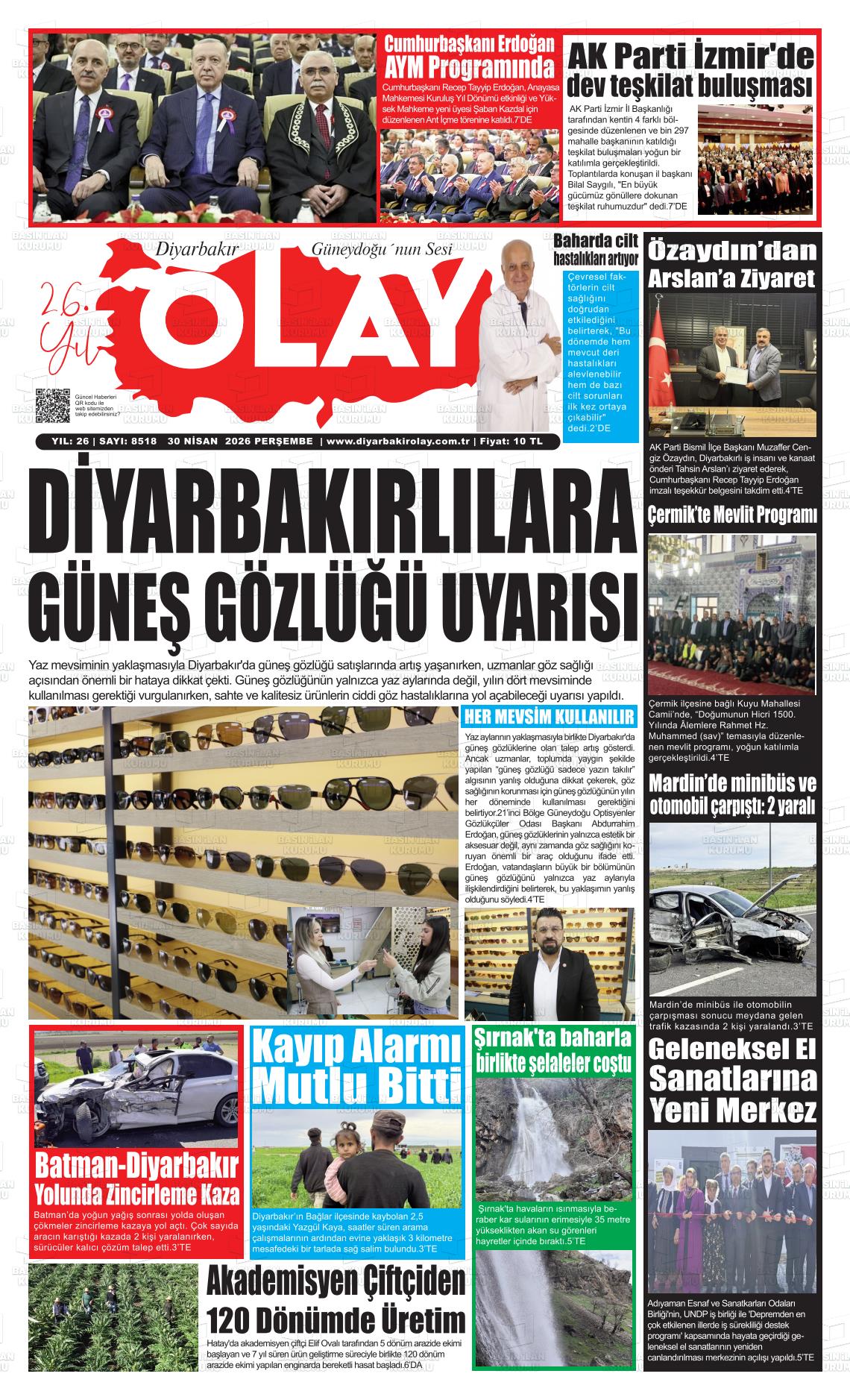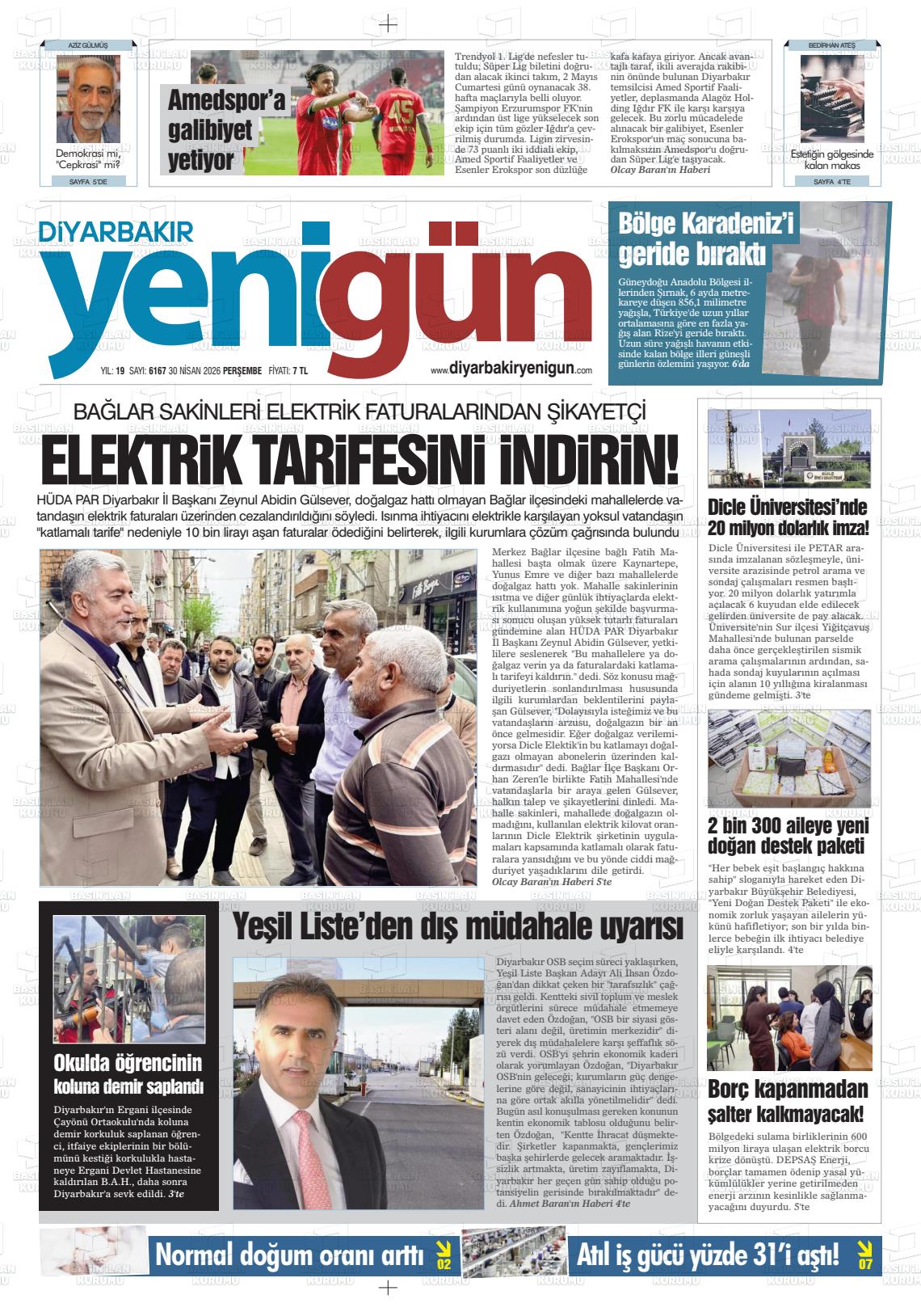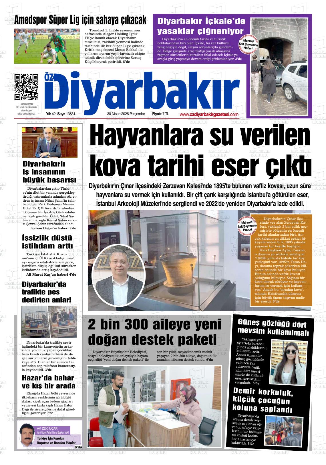 Dİyarbakır Yerel Gazeteleri 30 Nisan 2026, Perşembe Günü Manşeti