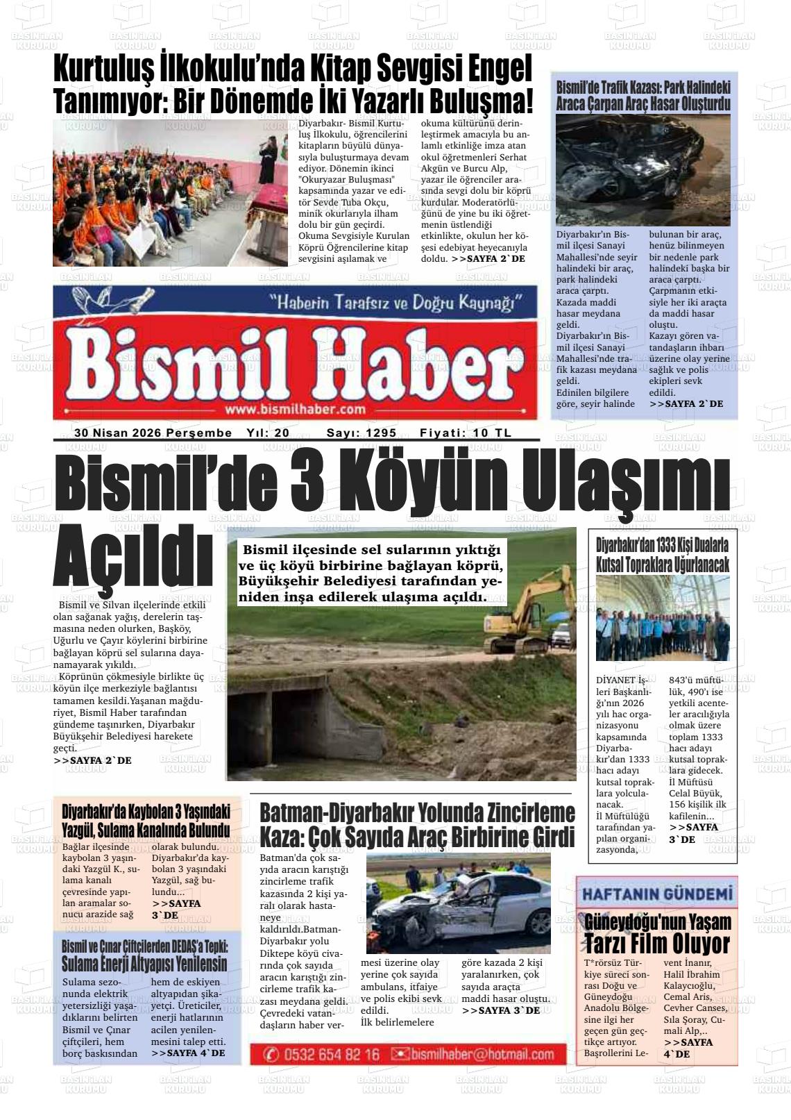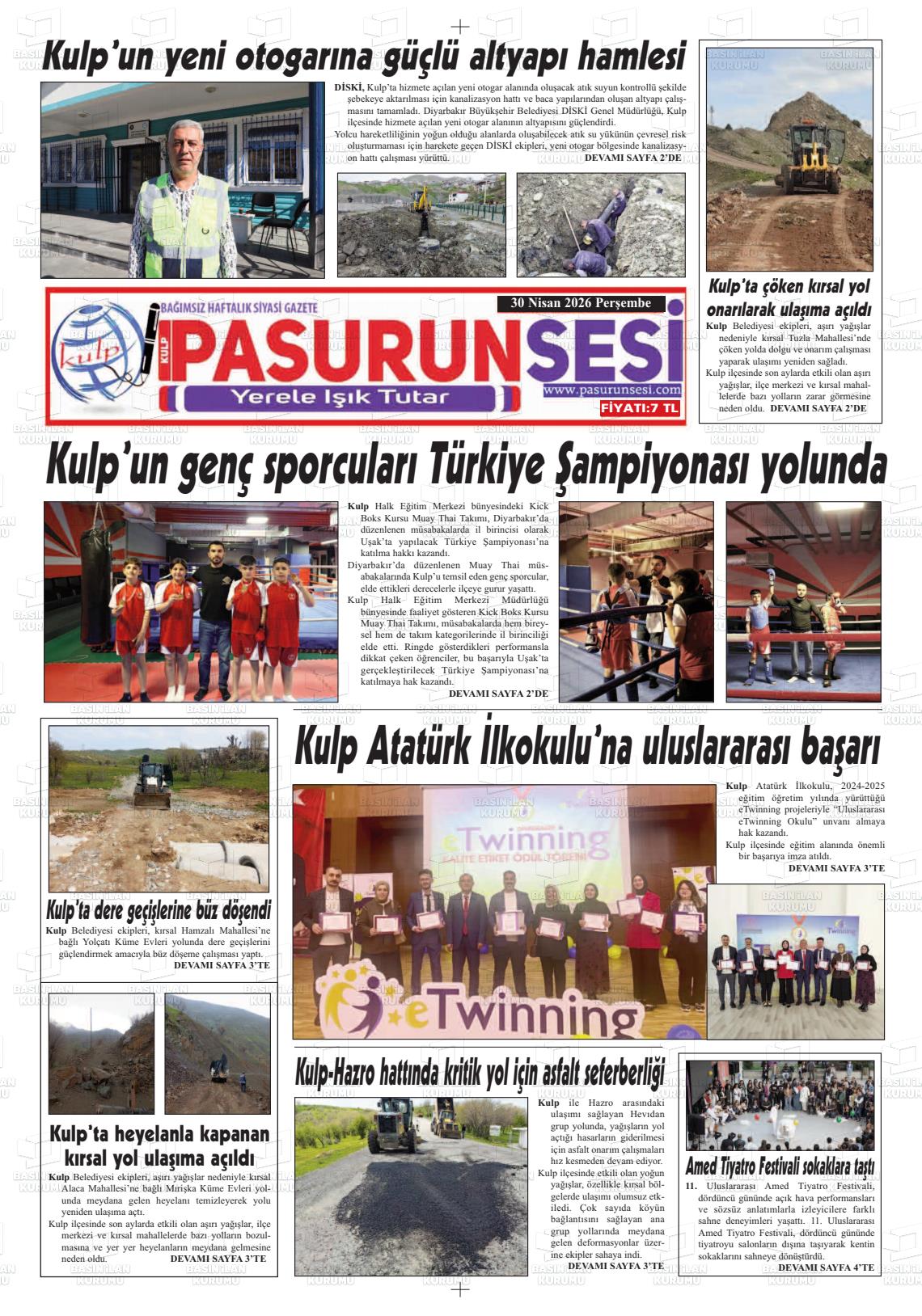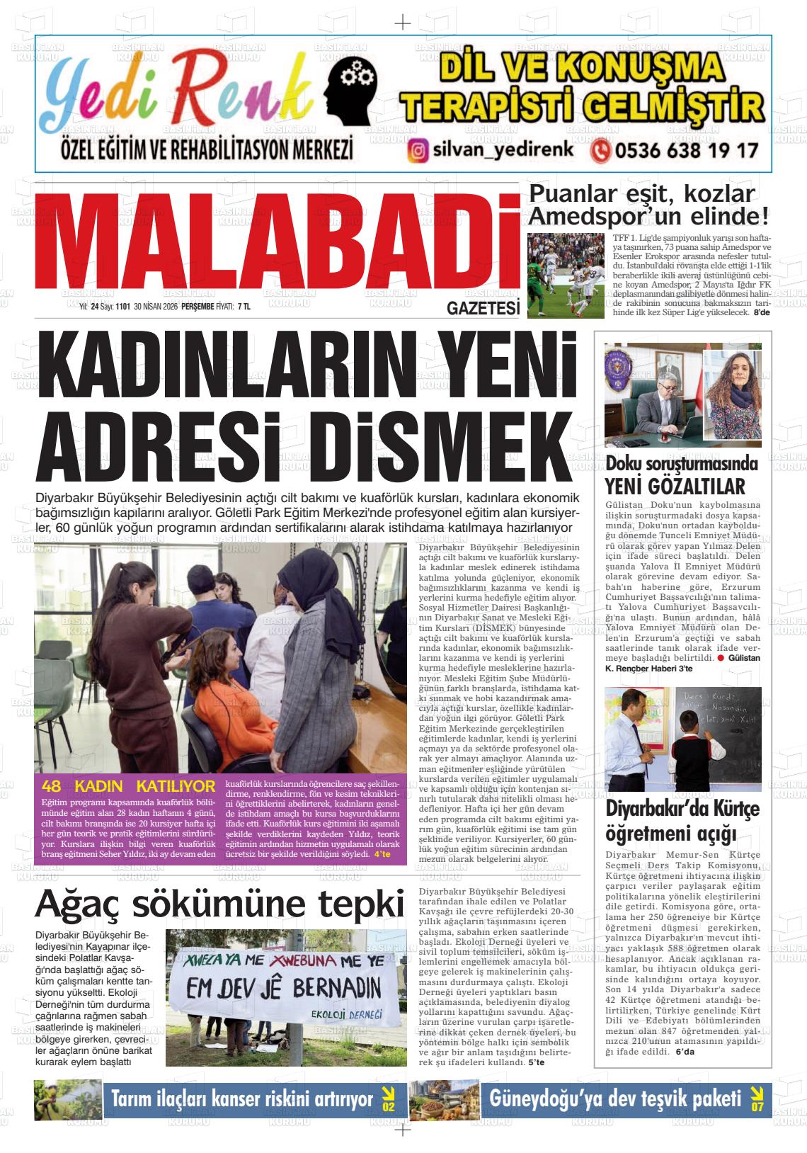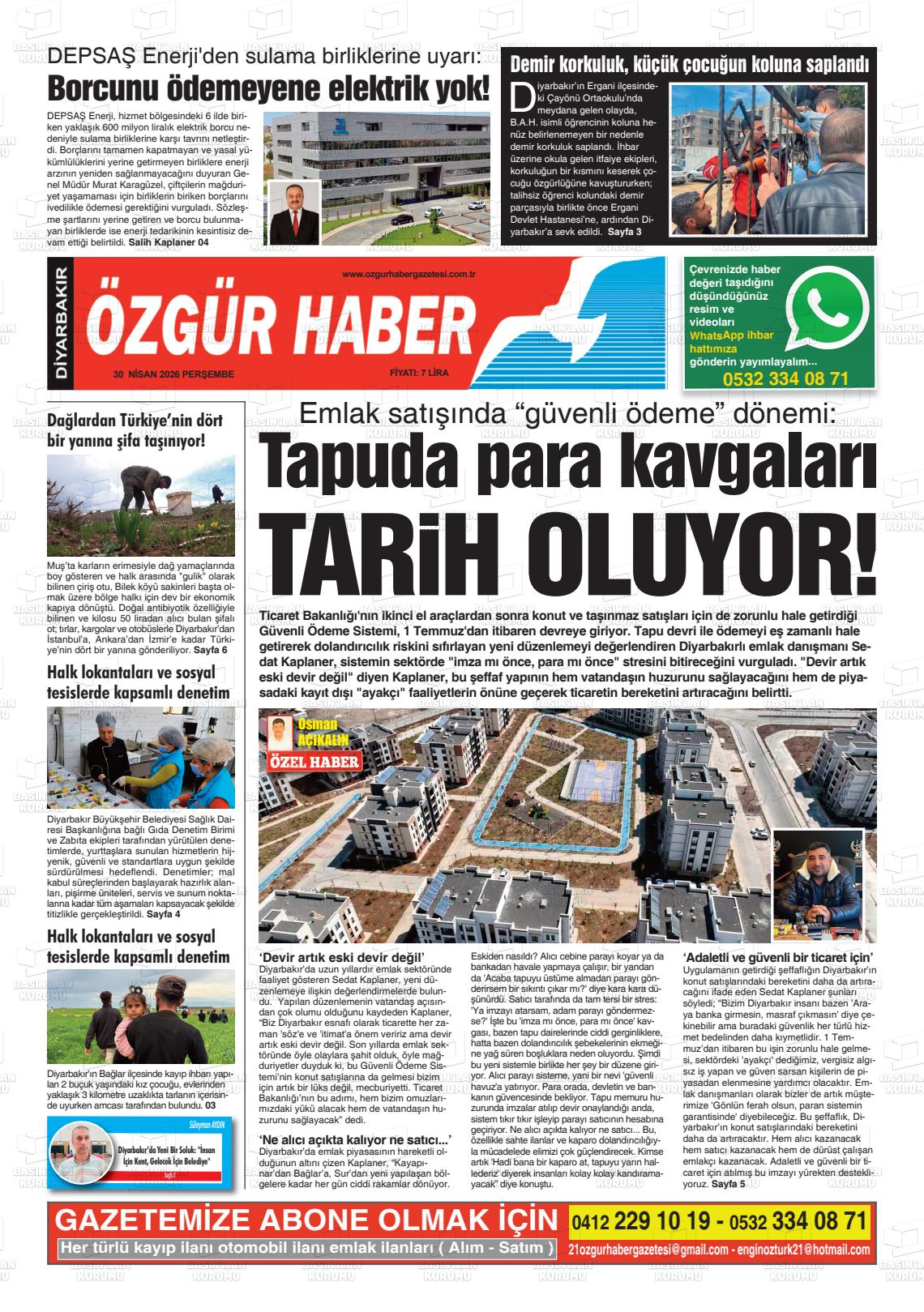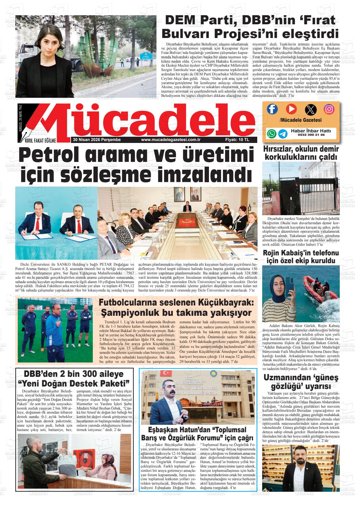 Dİyarbakır Yerel Gazeteleri 30 Nisan 2026, Perşembe Günü Manşeti