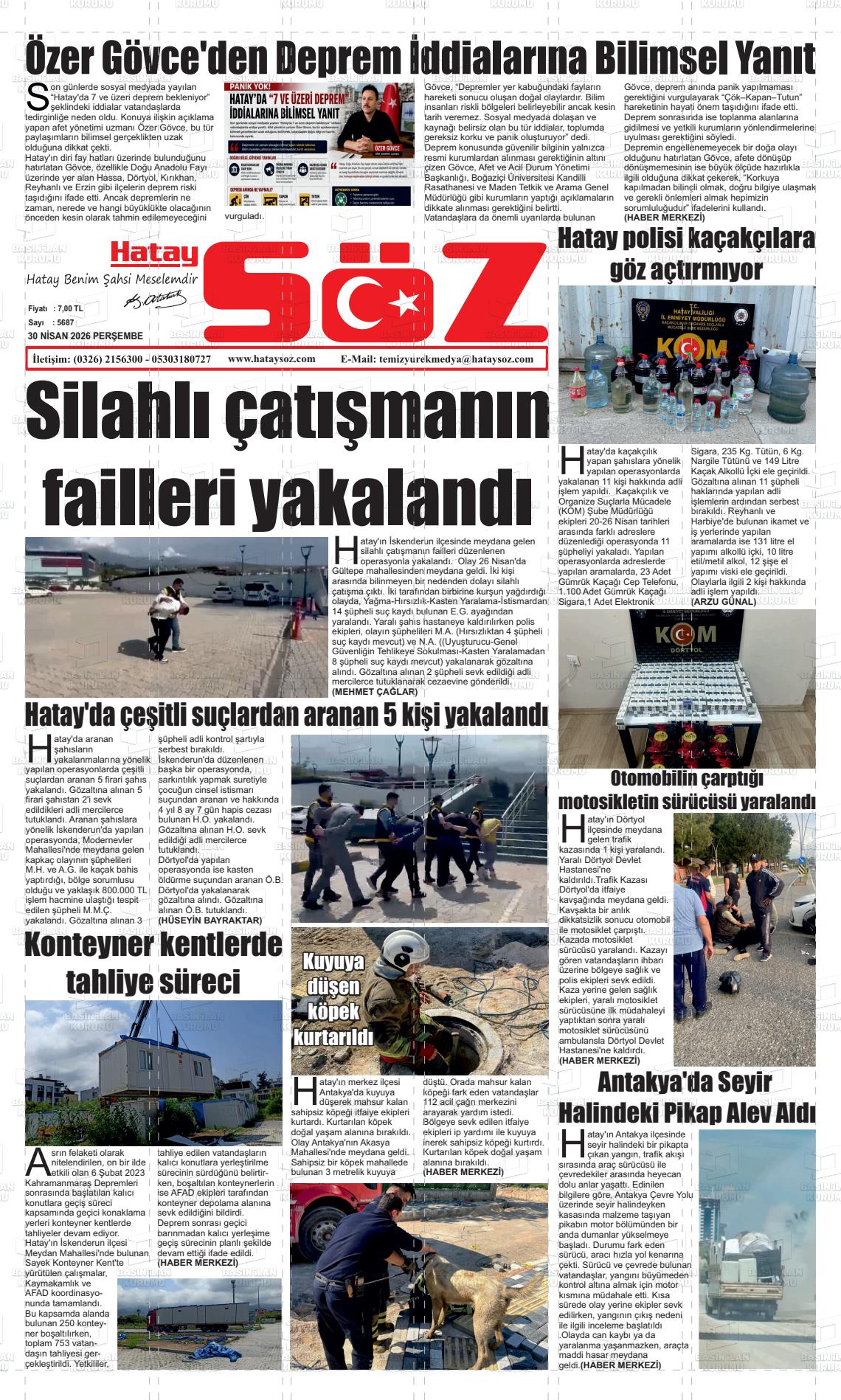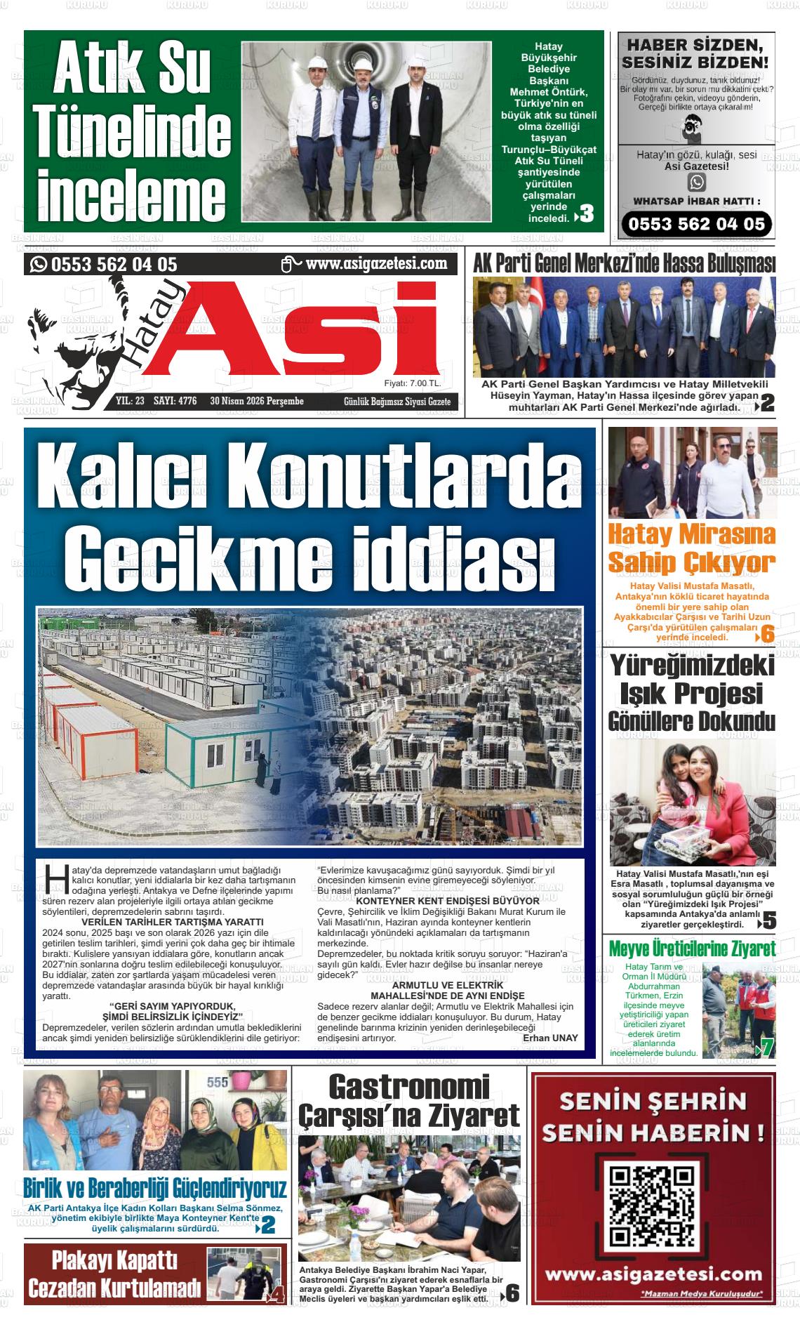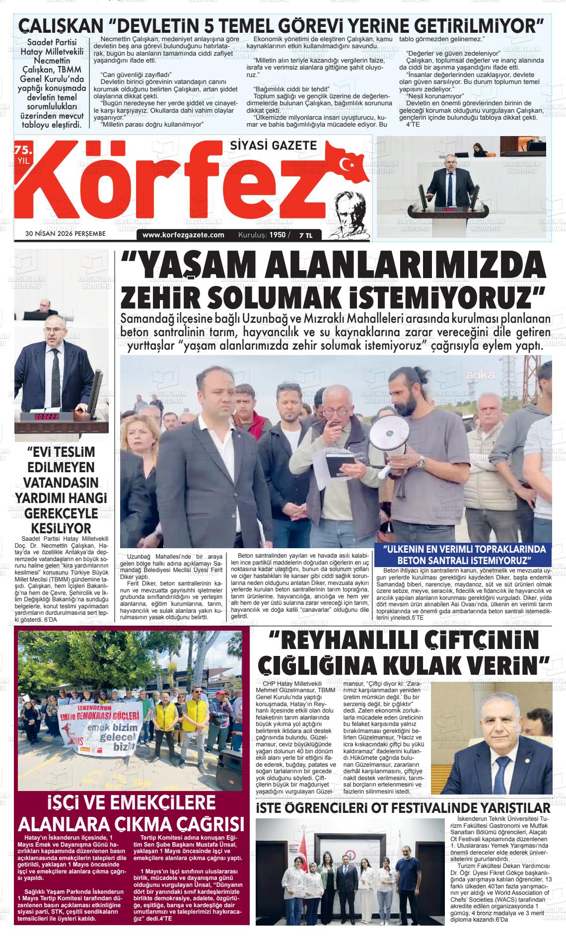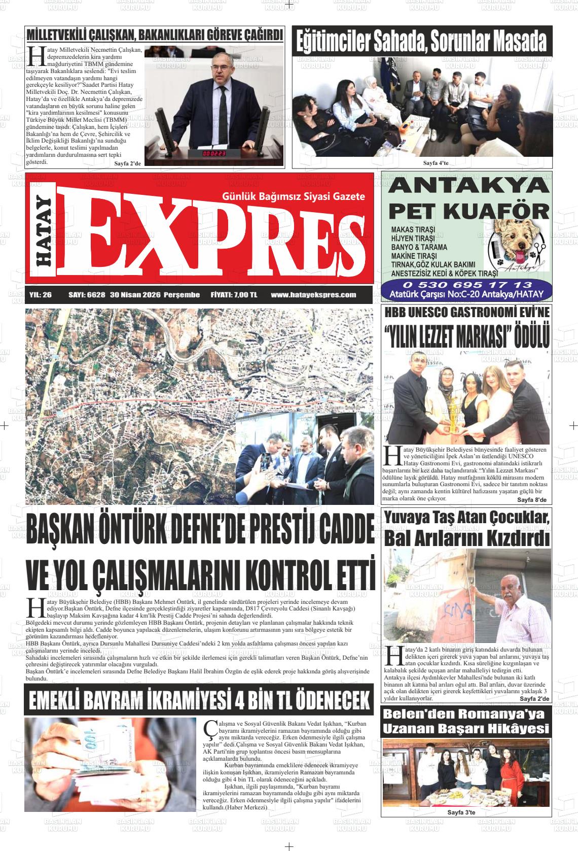 Hatay Yerel Gazeteleri 30 Nisan 2026, Perşembe Günü Manşeti