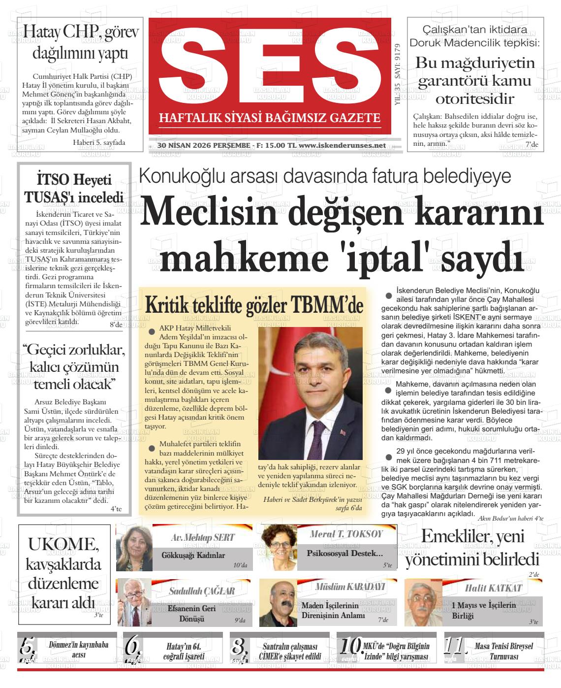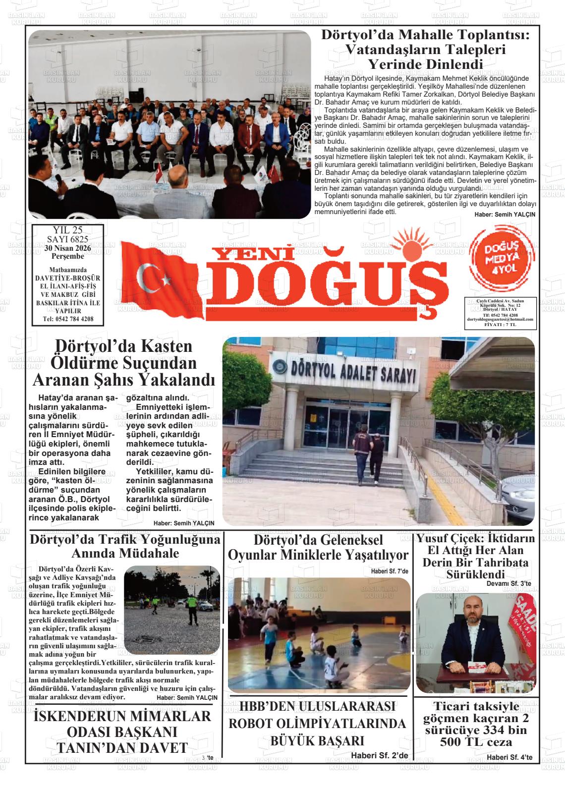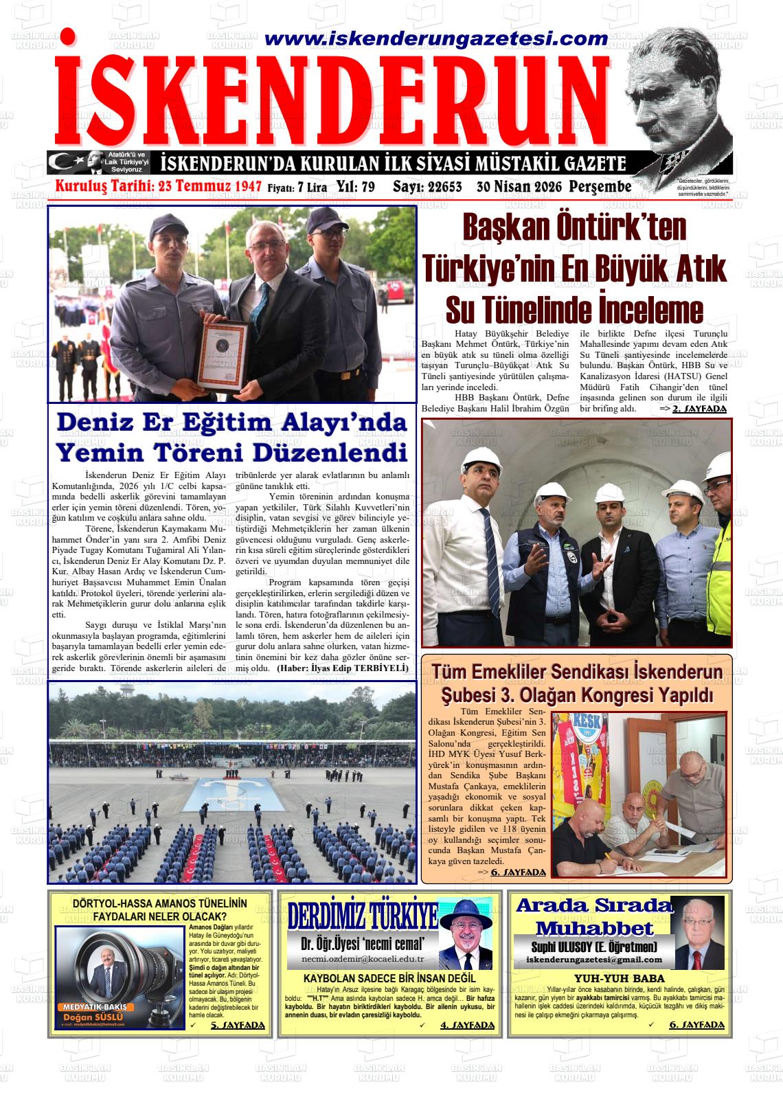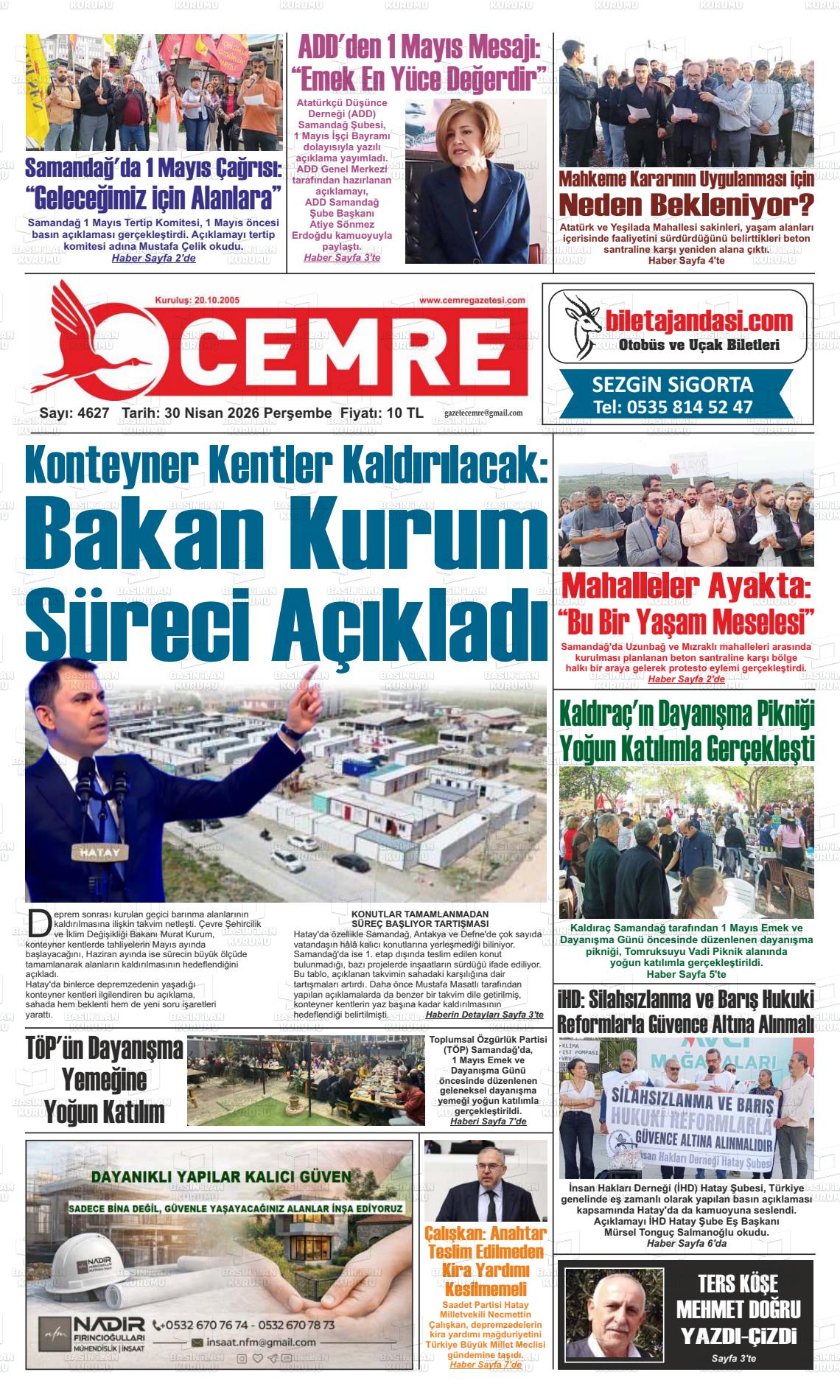 Hatay Yerel Gazeteleri 30 Nisan 2026, Perşembe Günü Manşeti