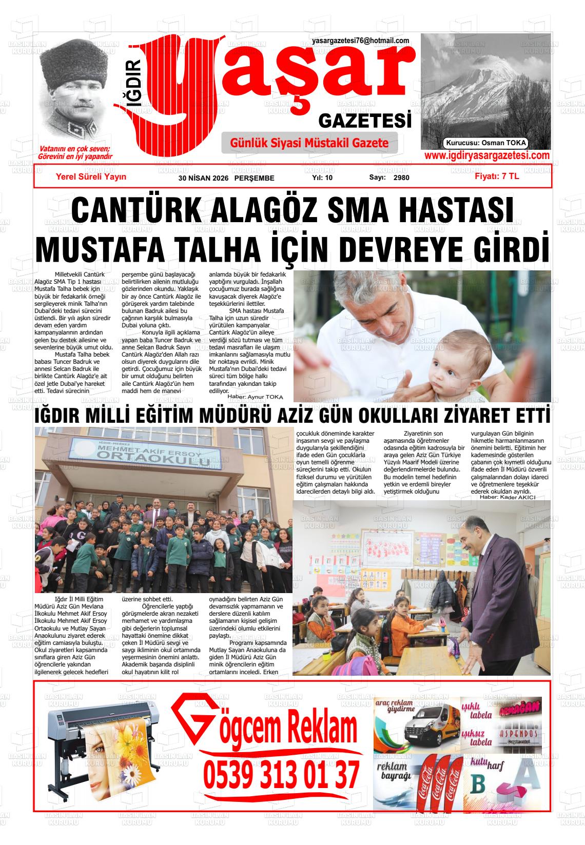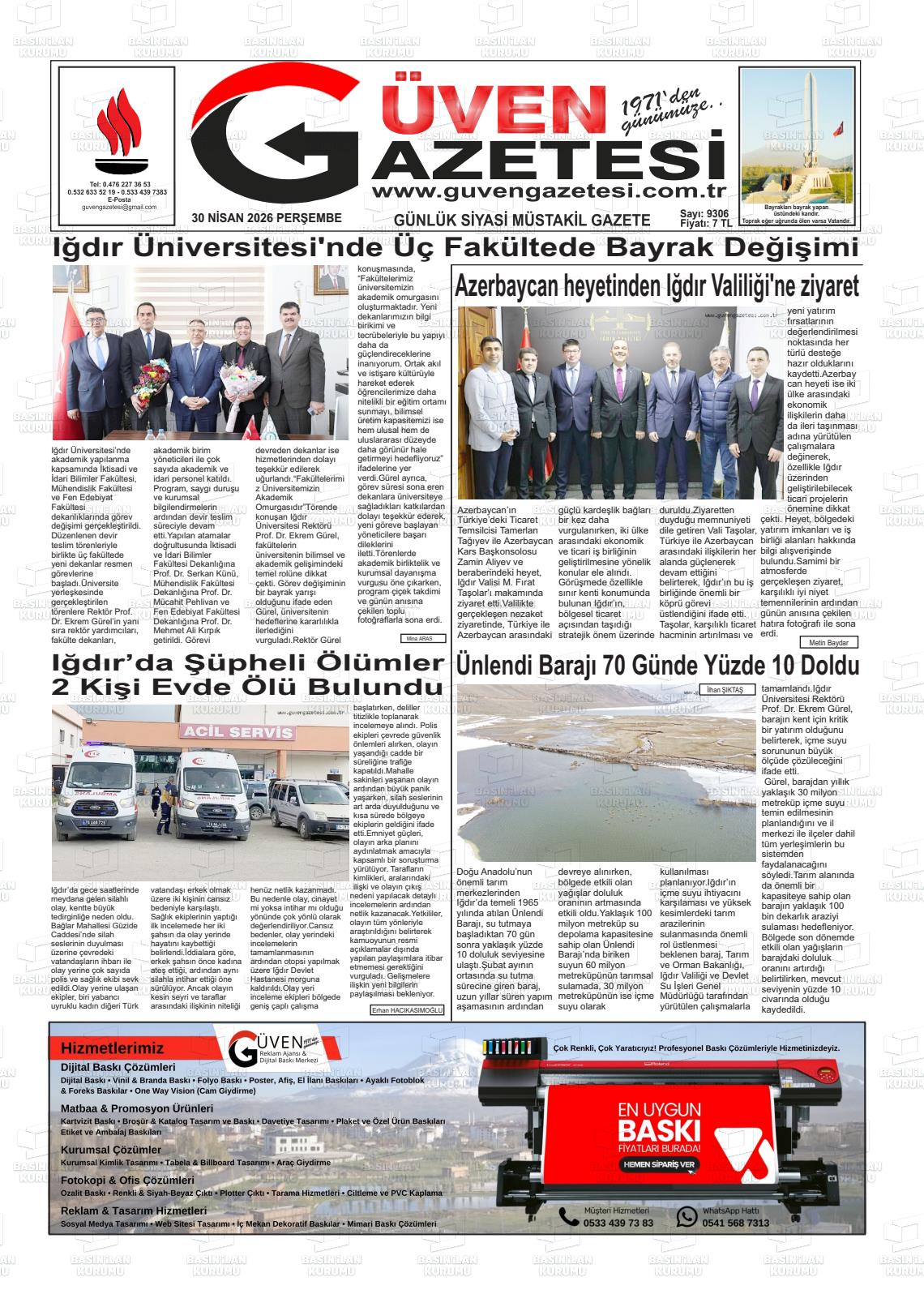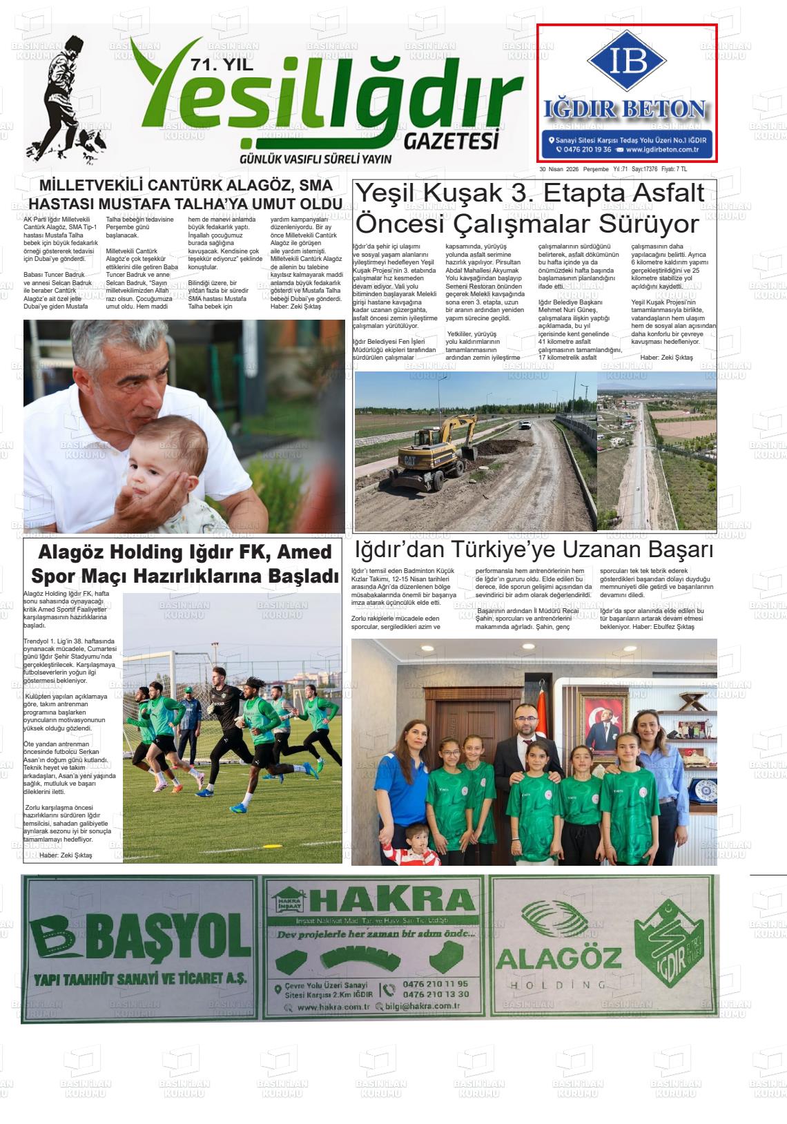 Iğdır Yerel Gazeteleri 30 Nisan 2026, Perşembe Günü Manşeti