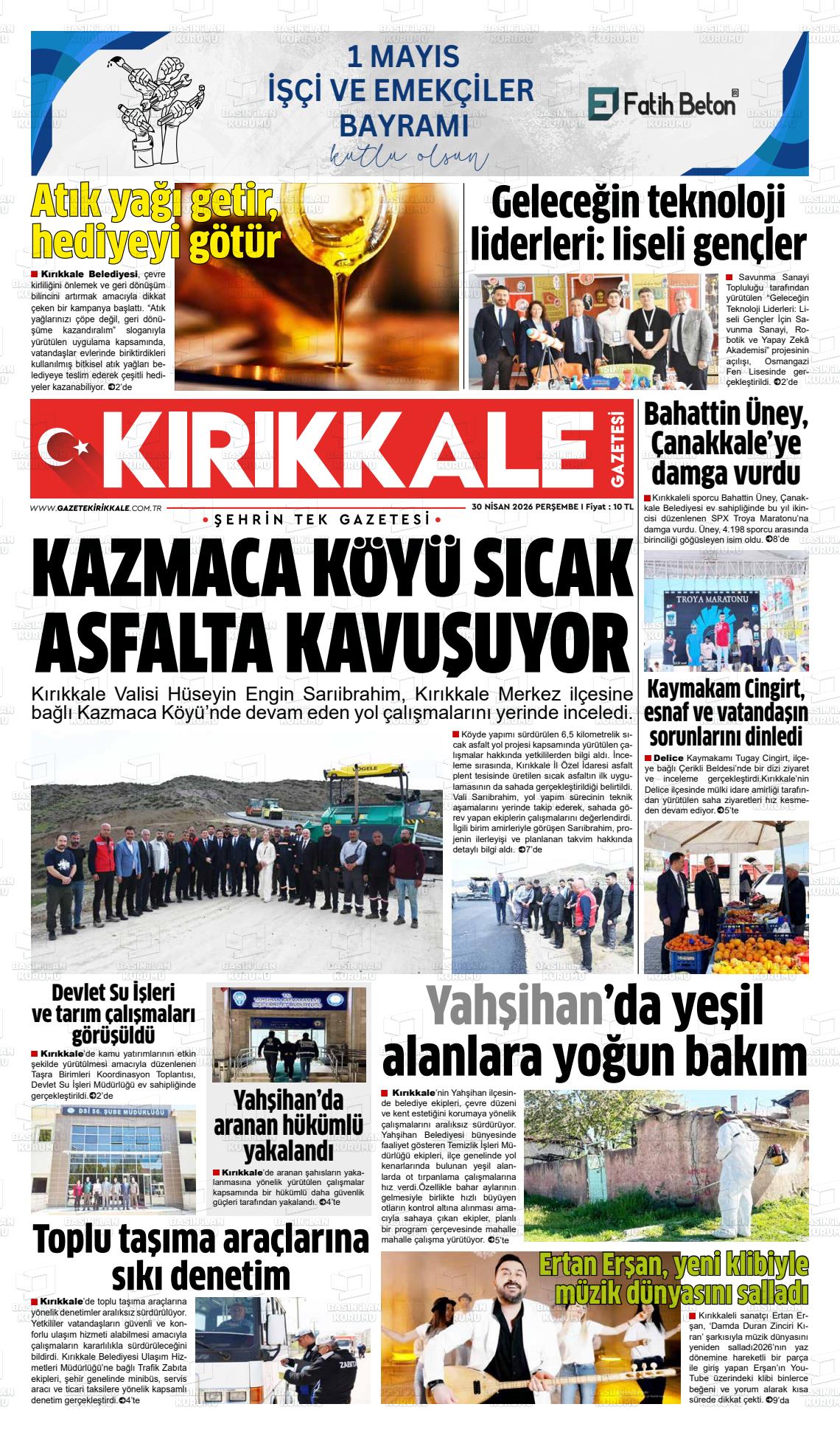 Kırıkkale Yerel Gazeteleri 30 Nisan 2026, Perşembe Günü Manşeti