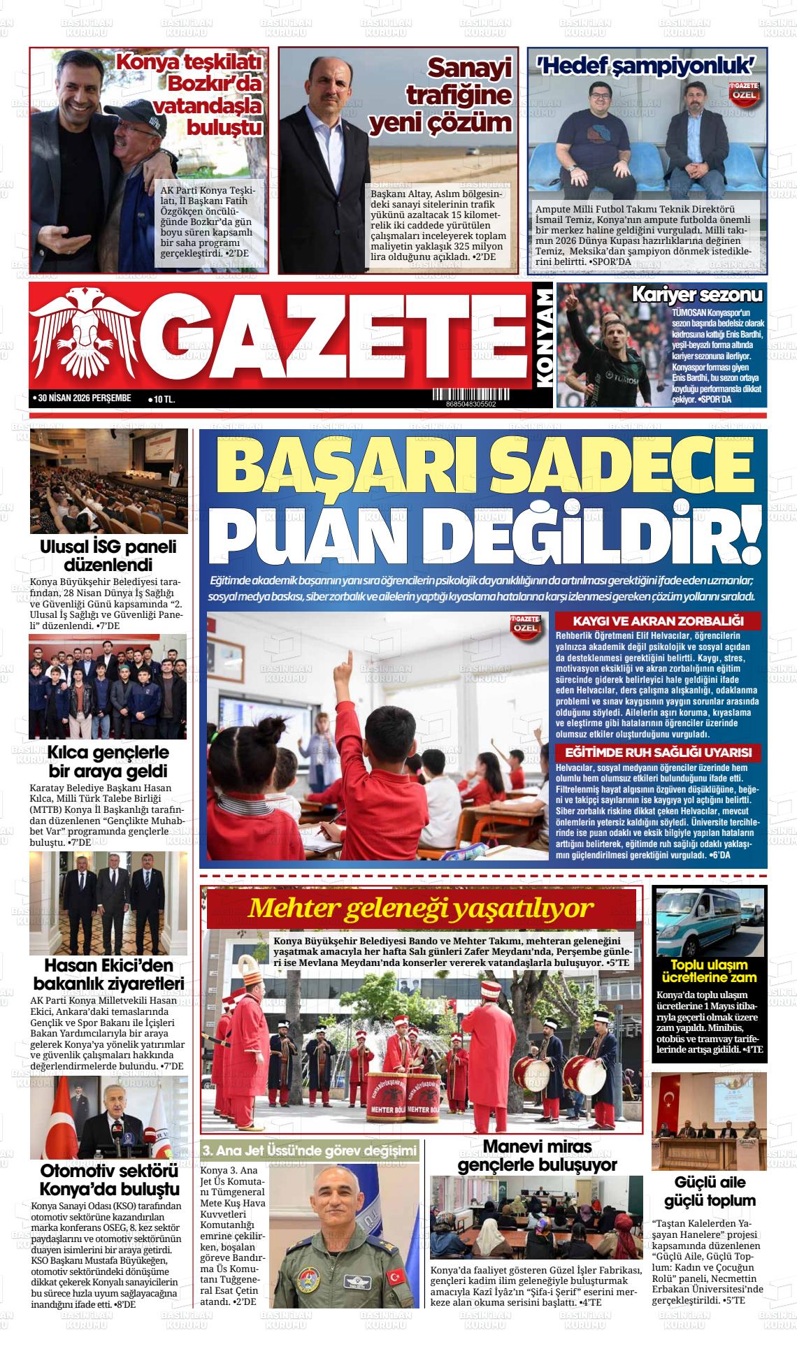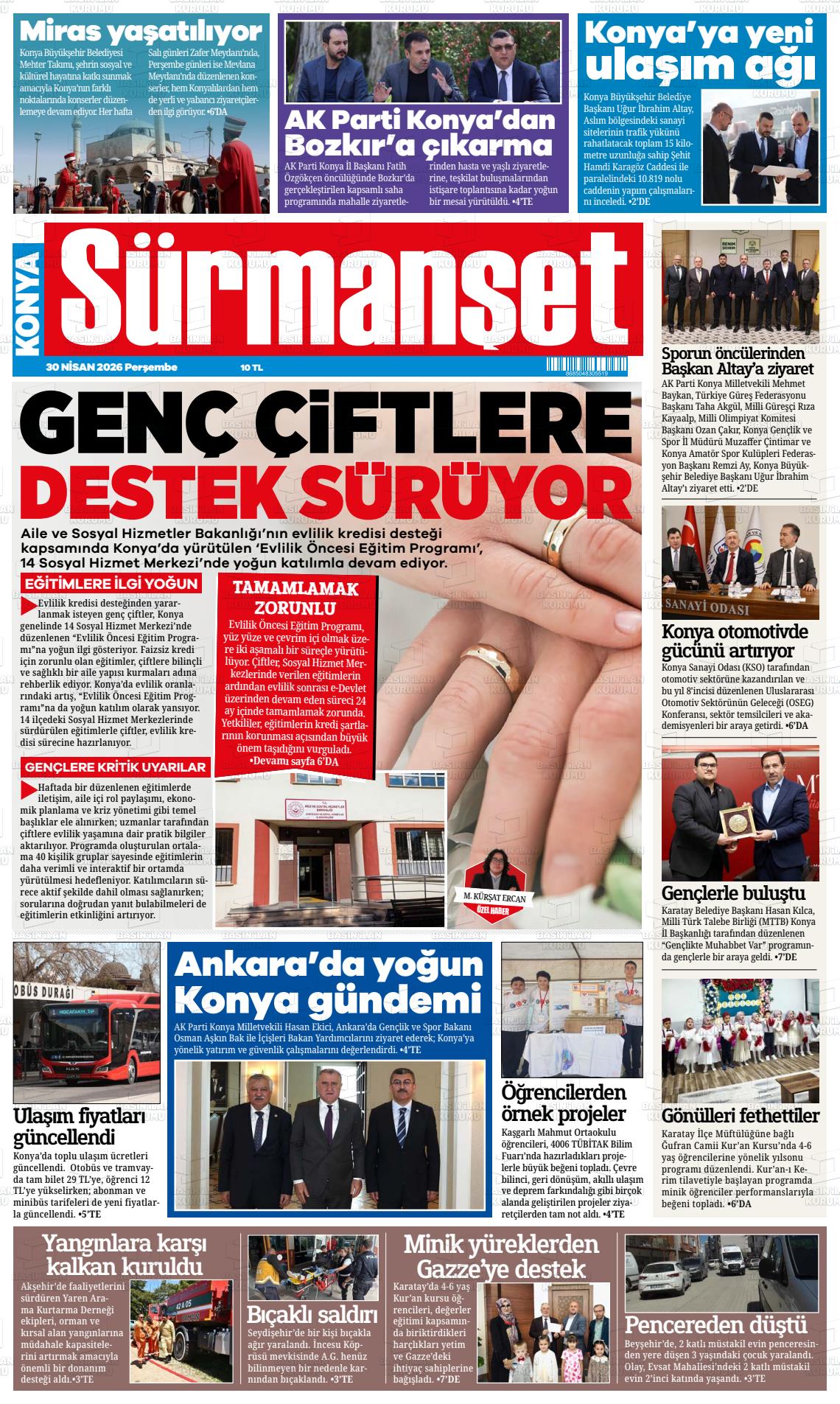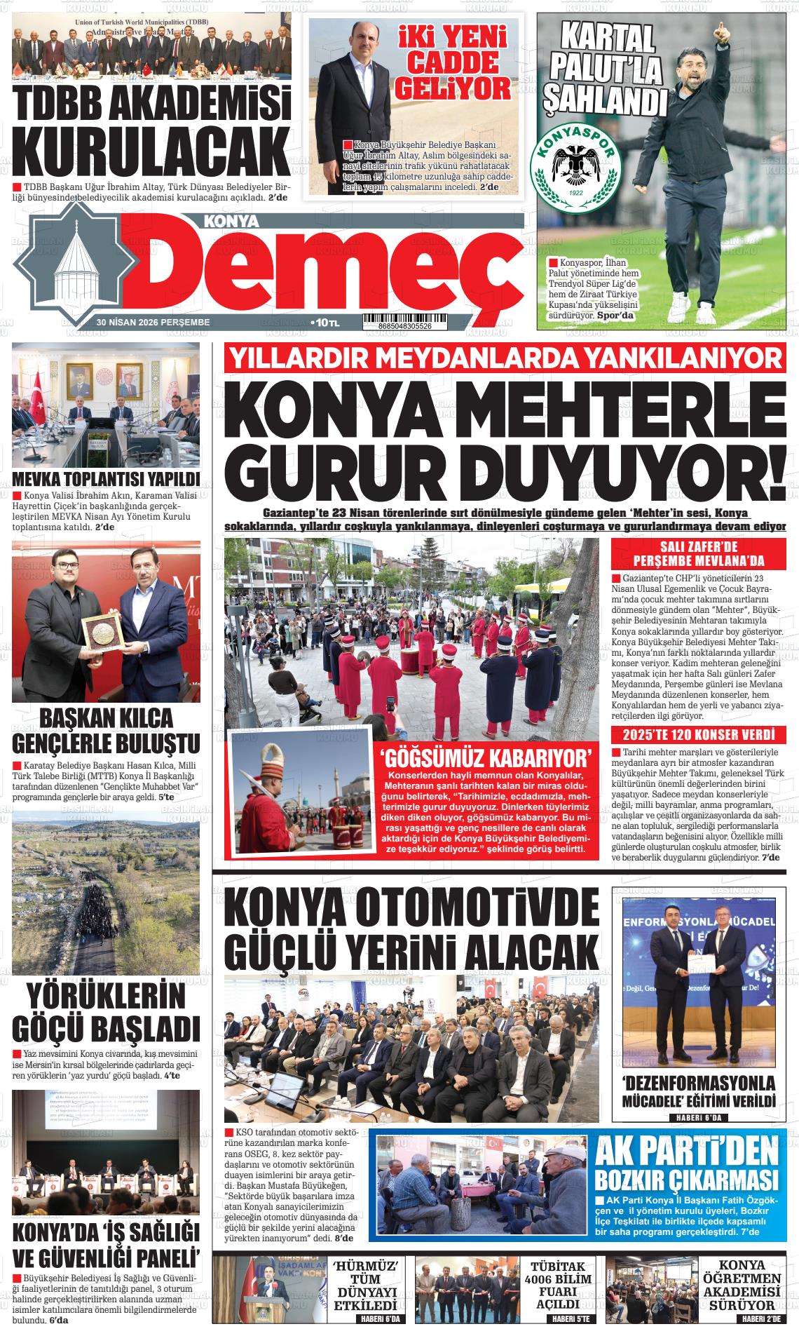 Konya Yerel Gazeteleri 30 Nisan 2026, Perşembe Günü Manşeti