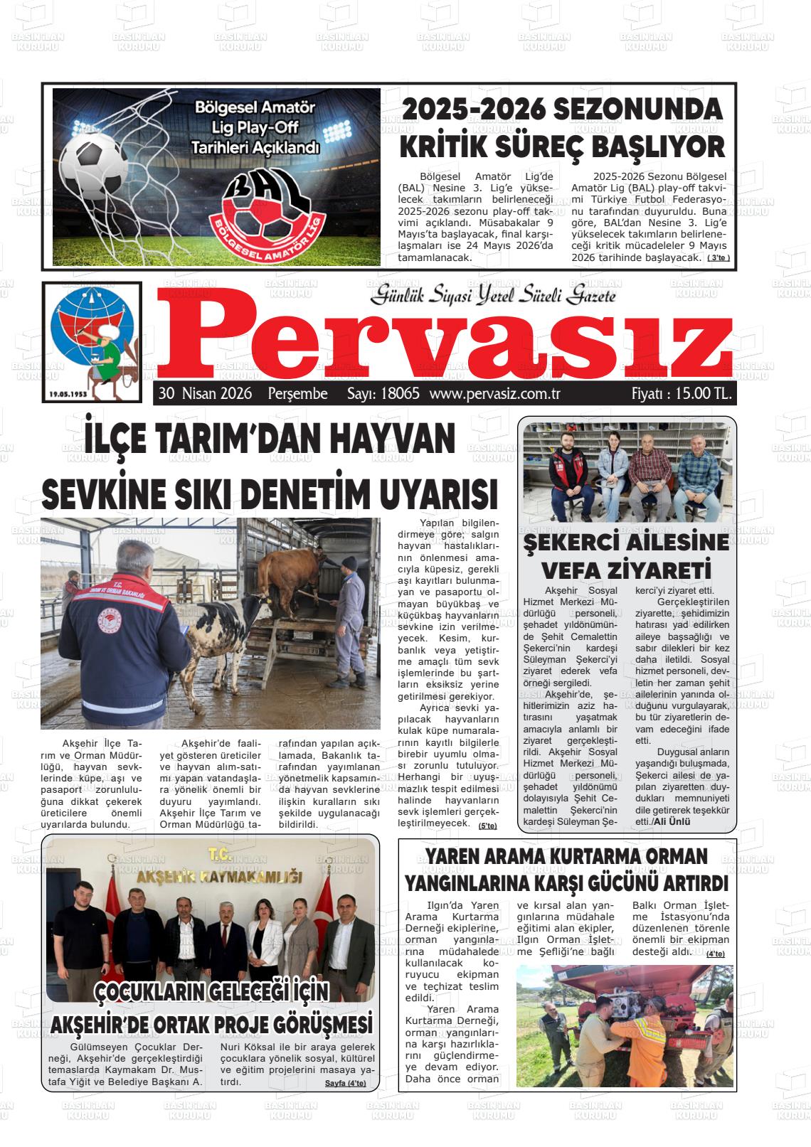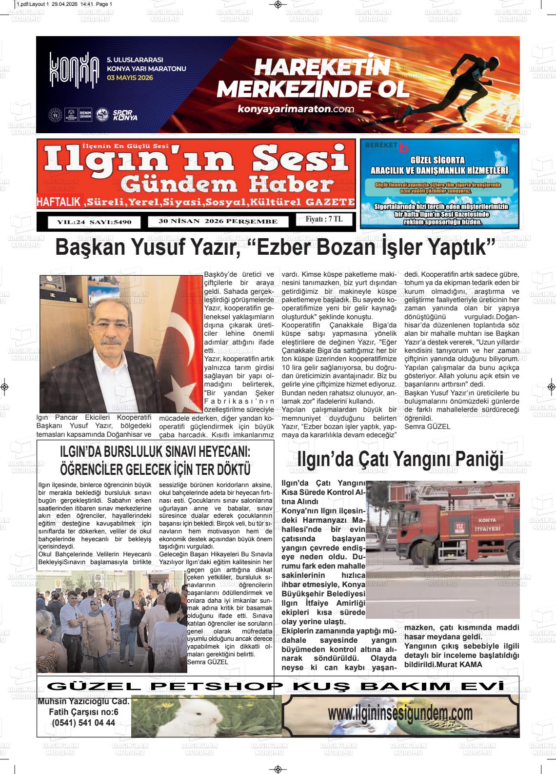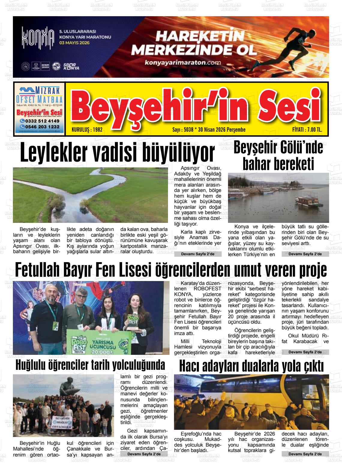 Konya Yerel Gazeteleri 30 Nisan 2026, Perşembe Günü Manşeti