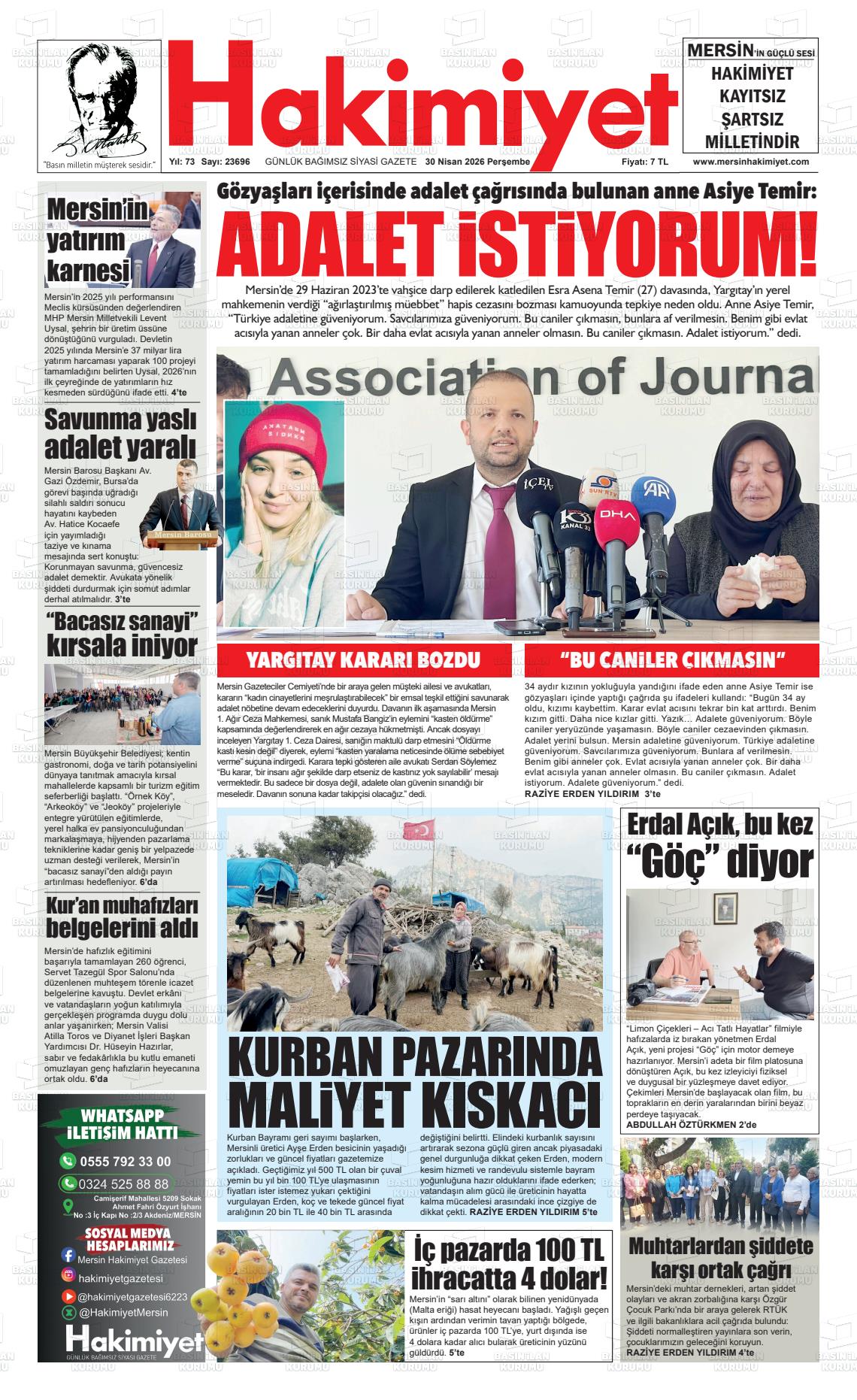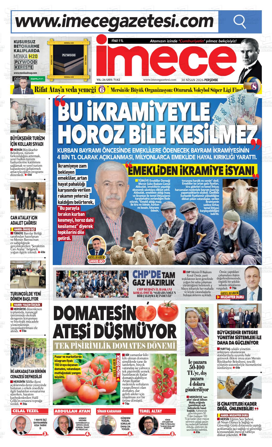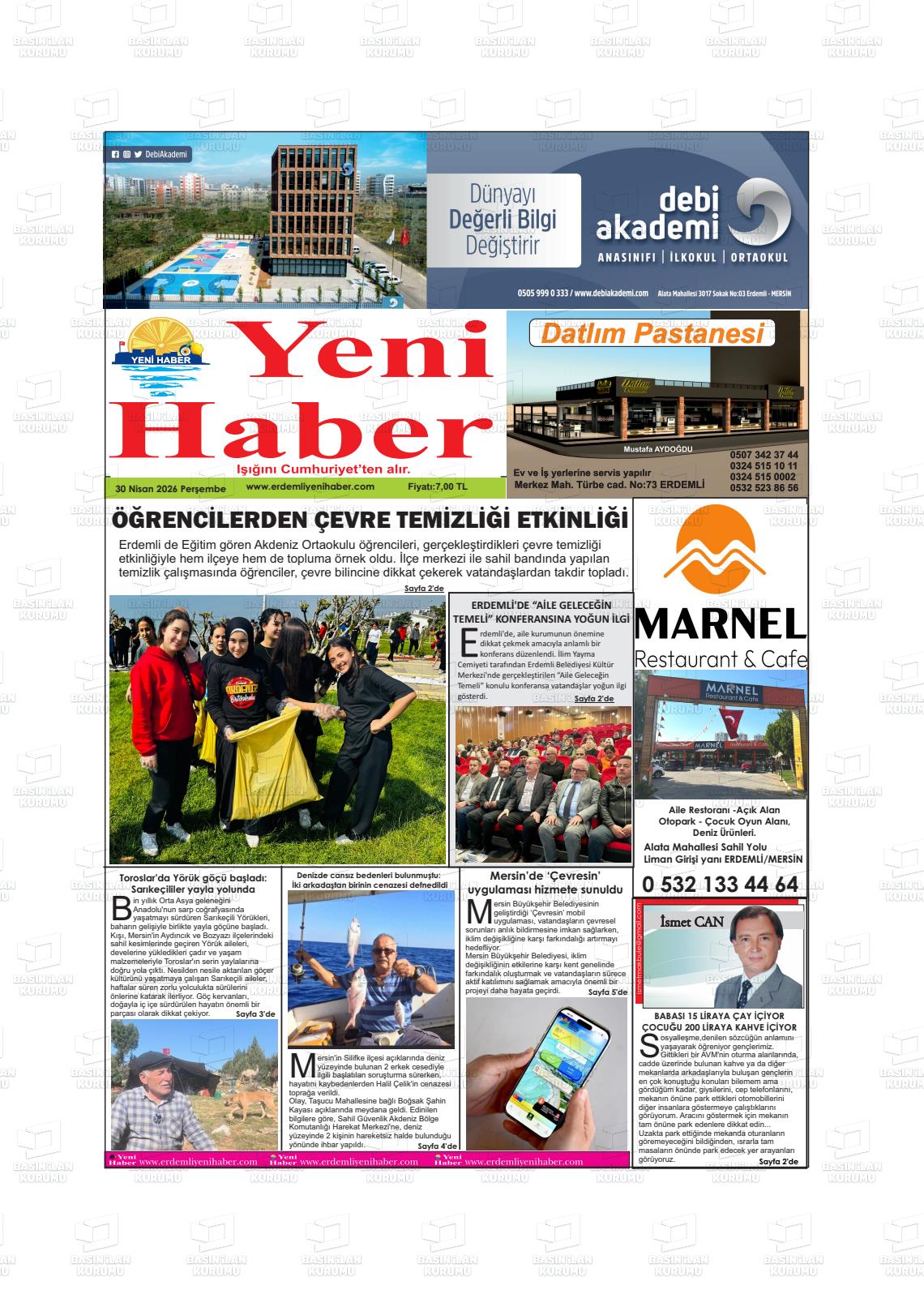 Mersİn Yerel Gazeteleri 30 Nisan 2026, Perşembe Günü Manşeti