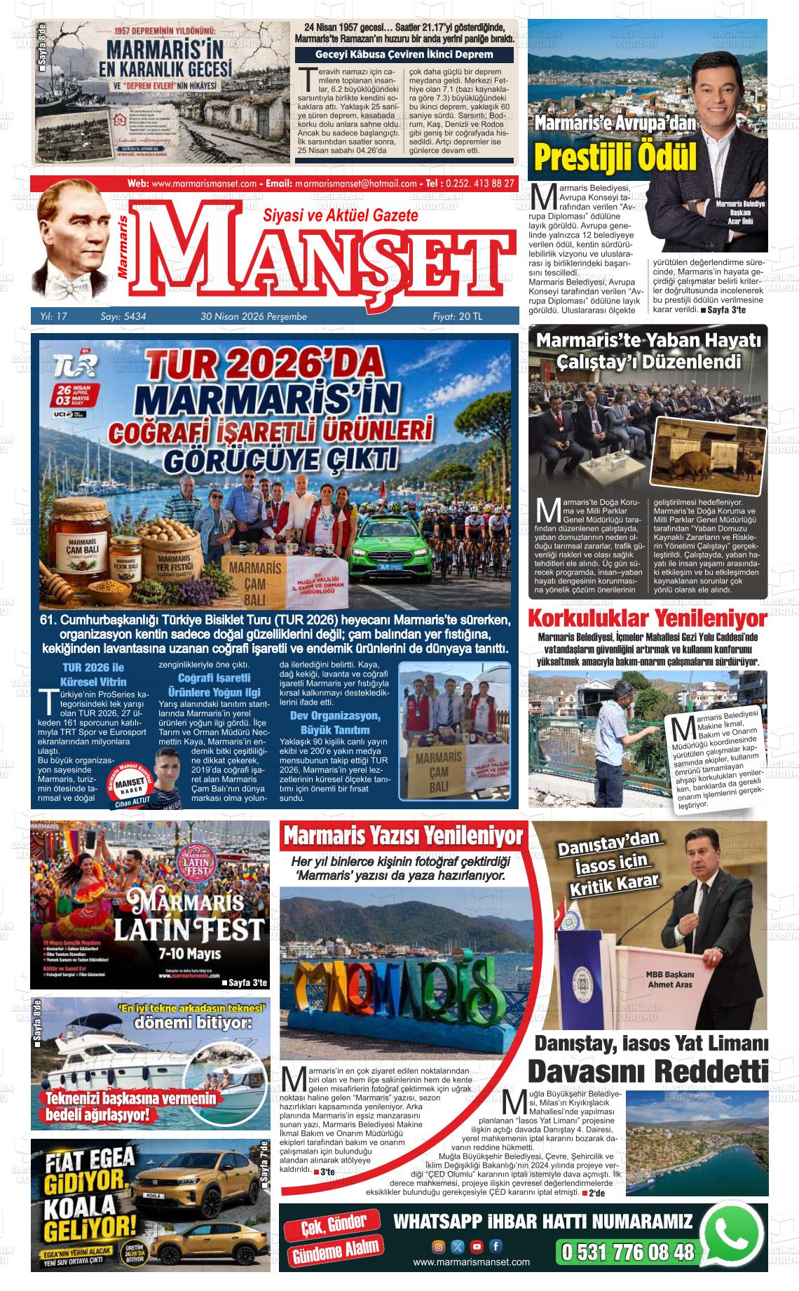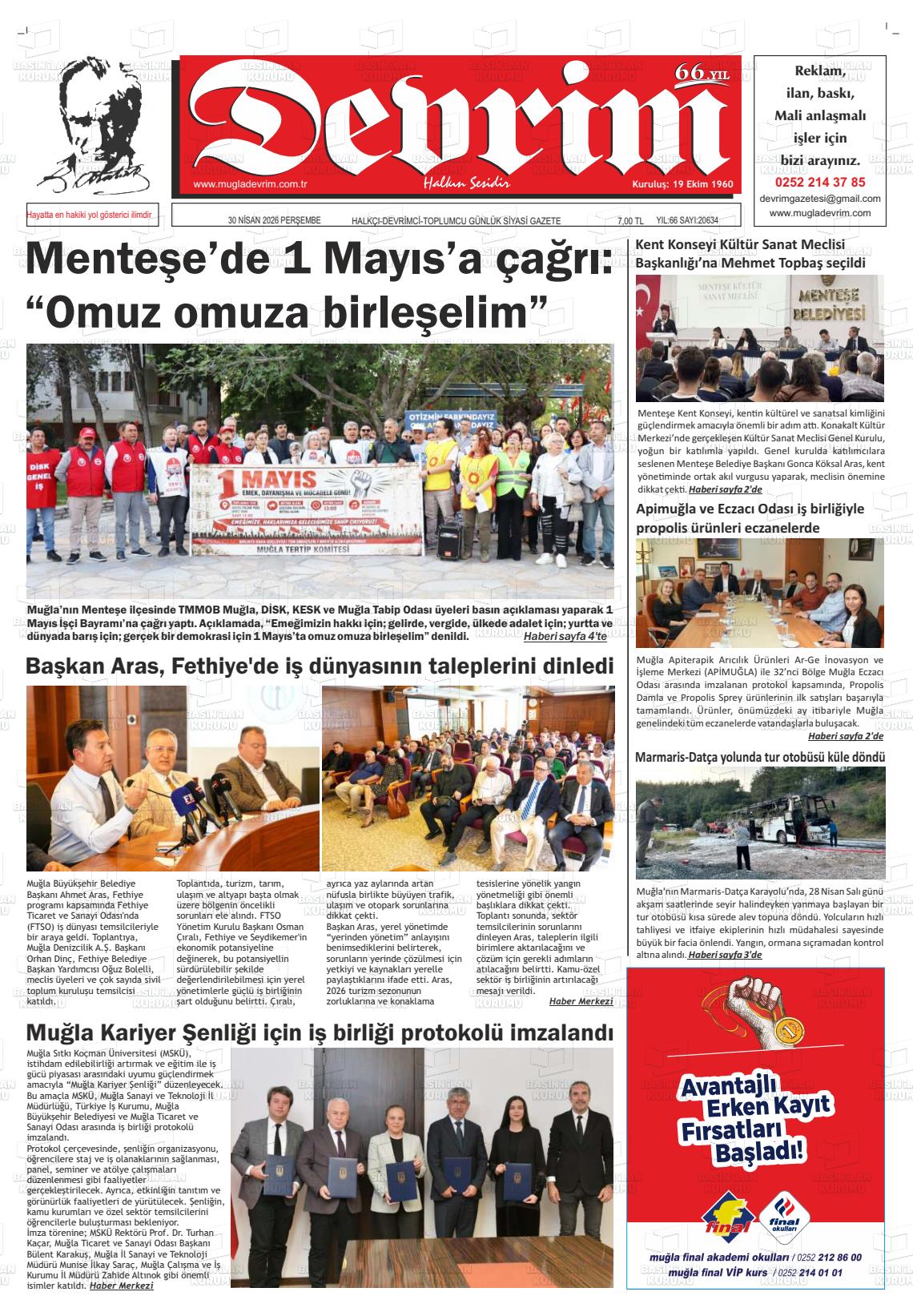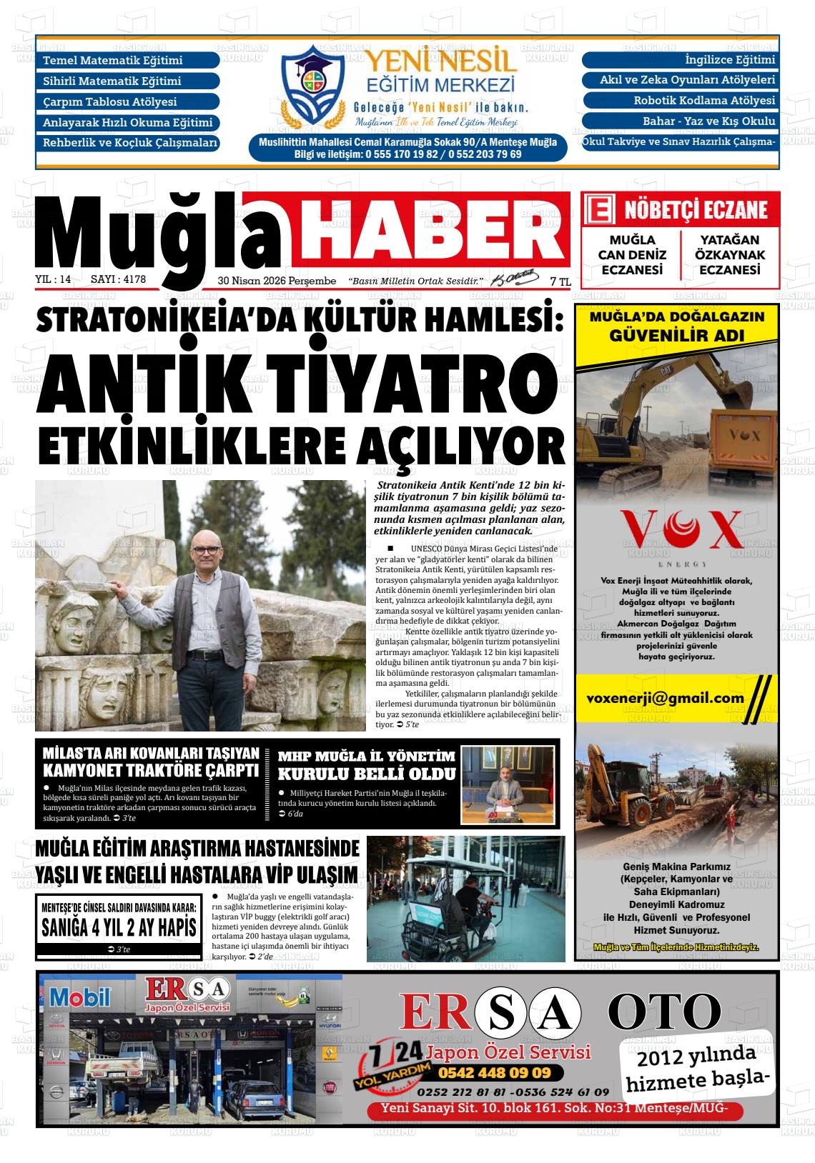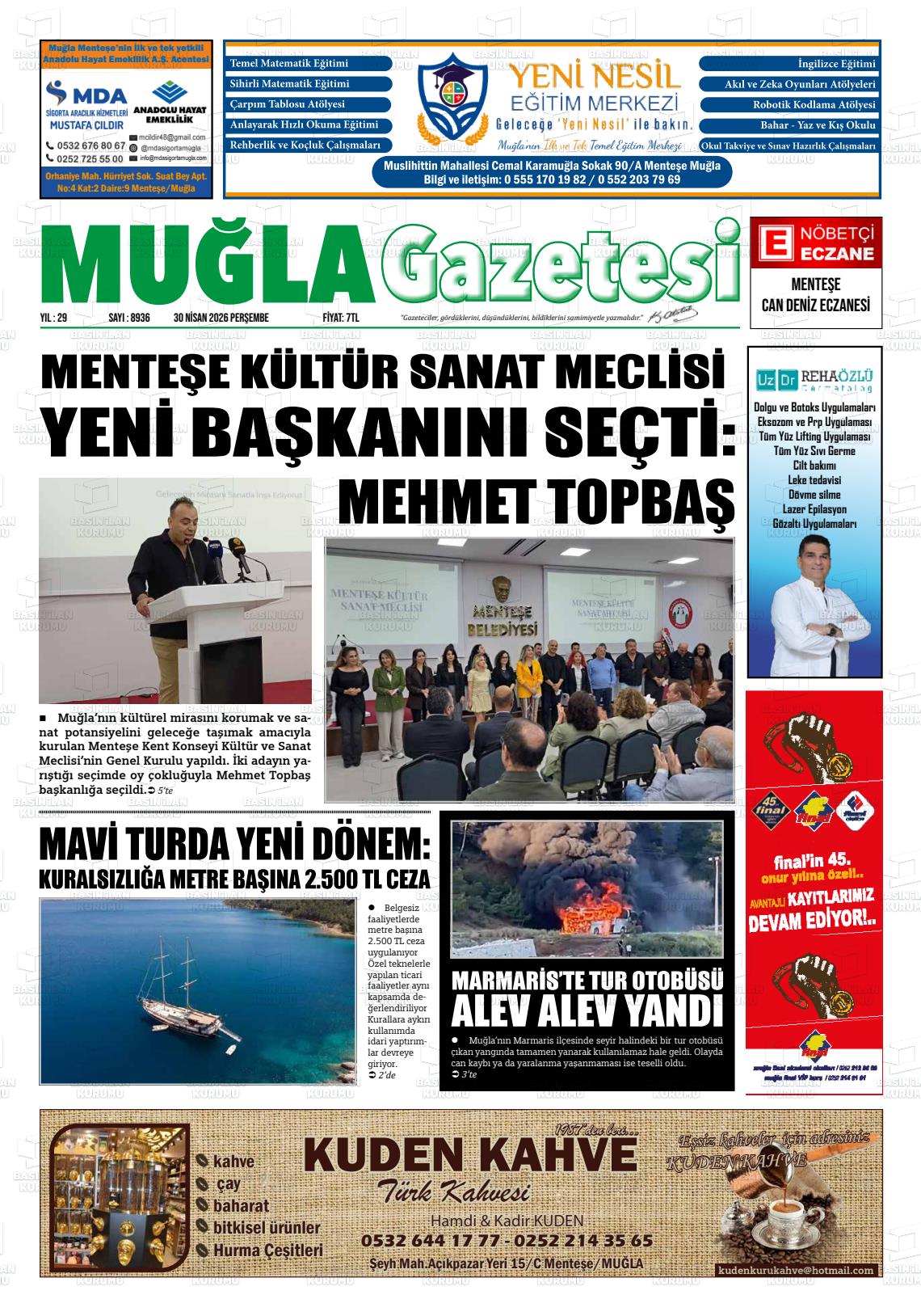Muğla Yerel Gazeteleri 30 Nisan 2026, Perşembe Günü Manşeti