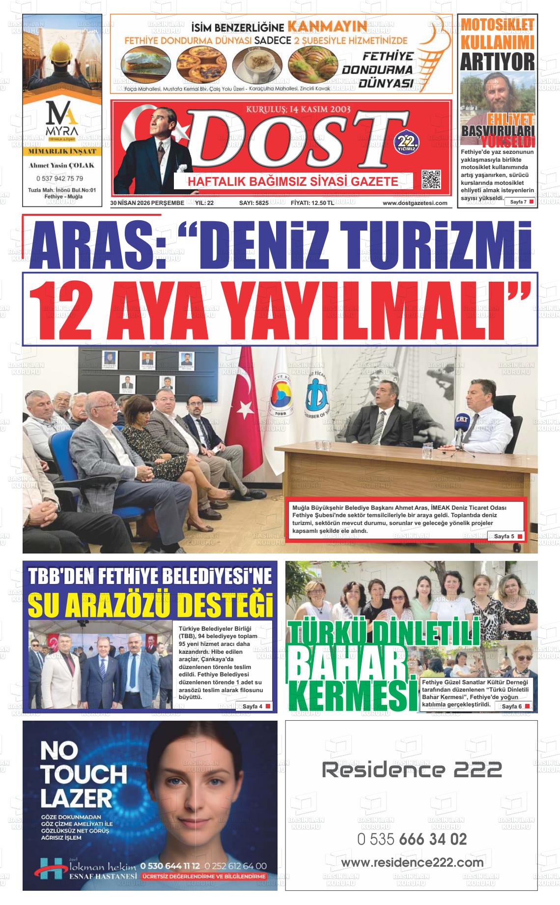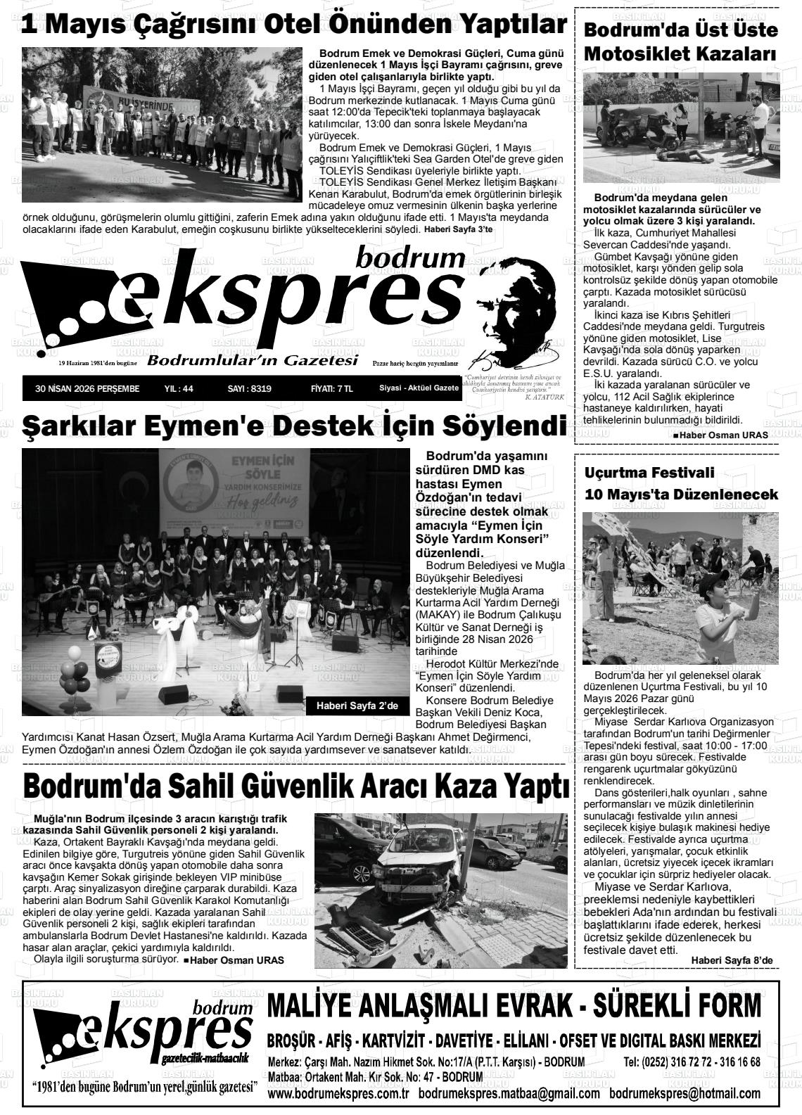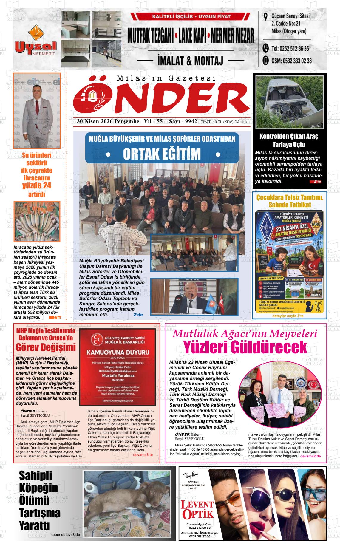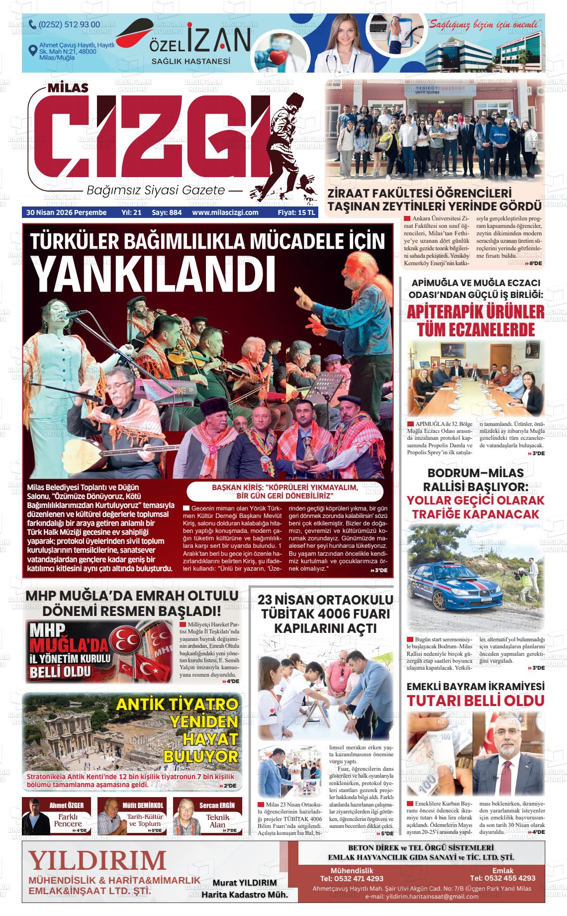 Muğla Yerel Gazeteleri 30 Nisan 2026, Perşembe Günü Manşeti