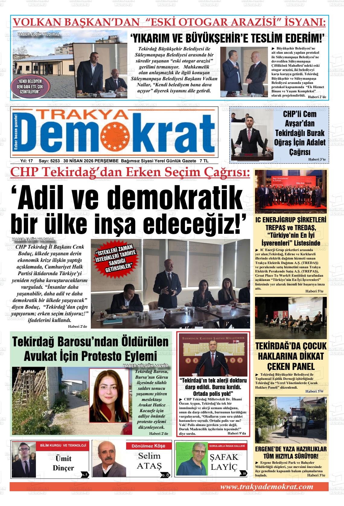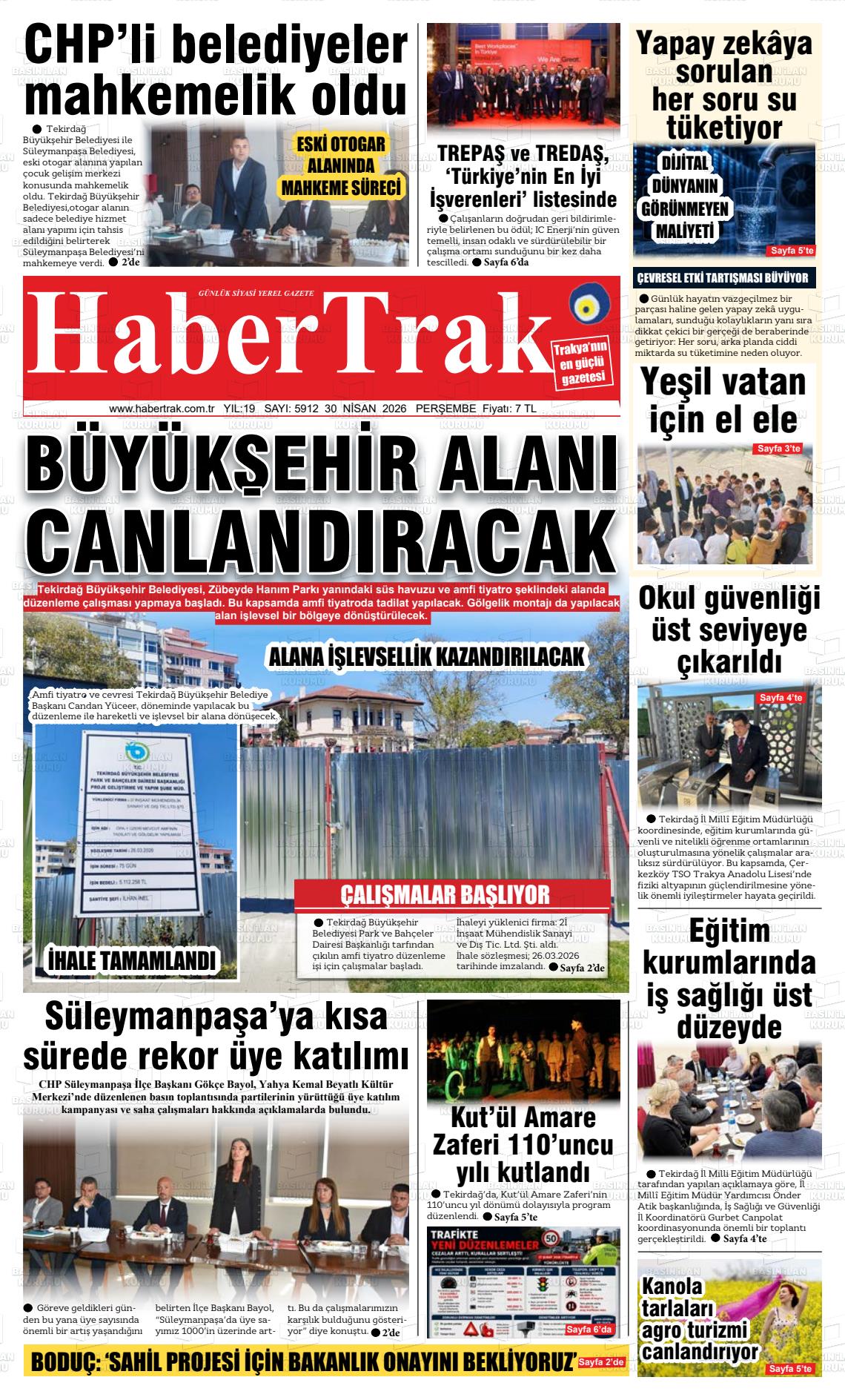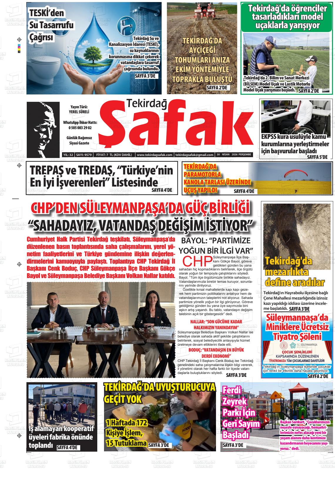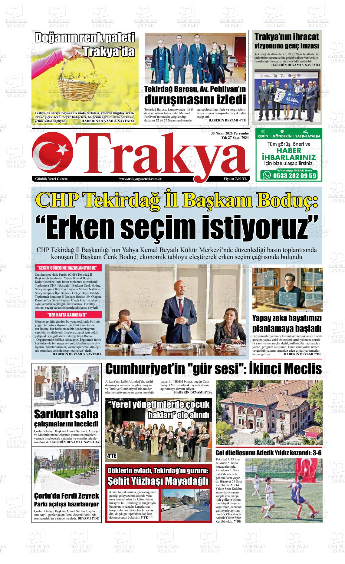 Tekİrdağ Yerel Gazeteleri 30 Nisan 2026, Perşembe Günü Manşeti
