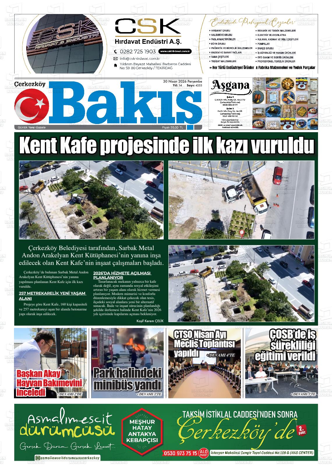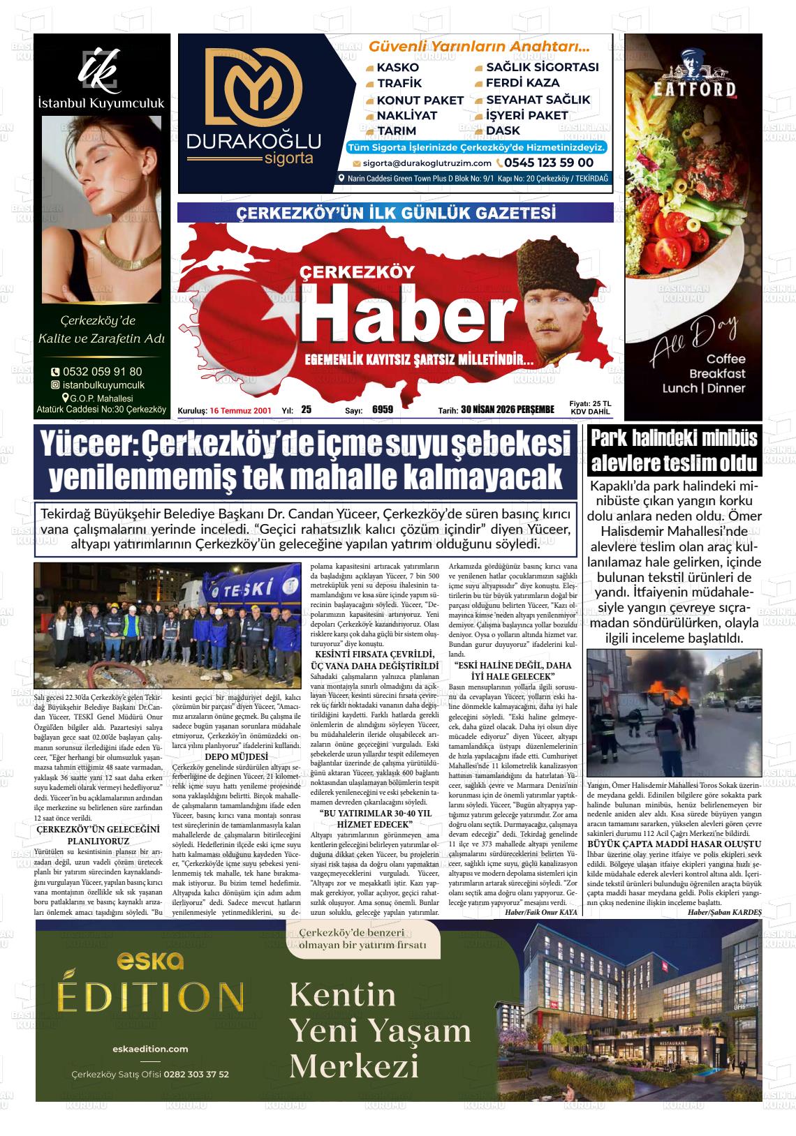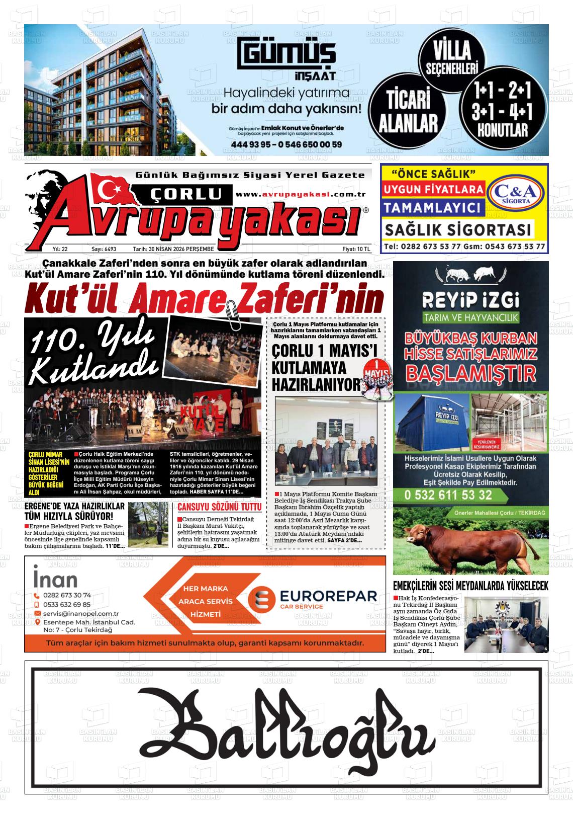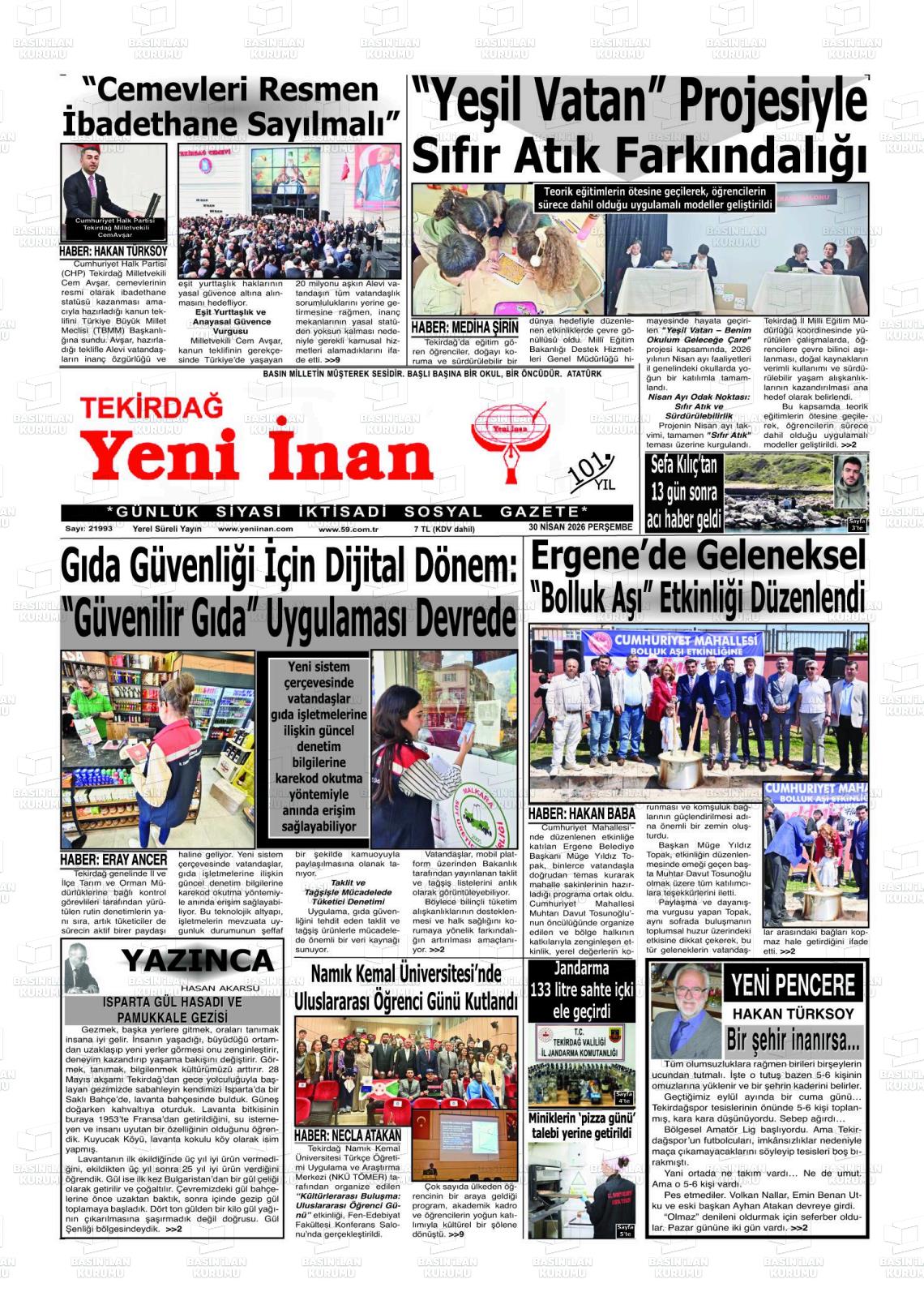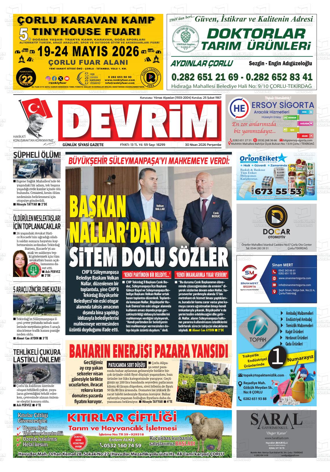 Tekİrdağ Yerel Gazeteleri 30 Nisan 2026, Perşembe Günü Manşeti