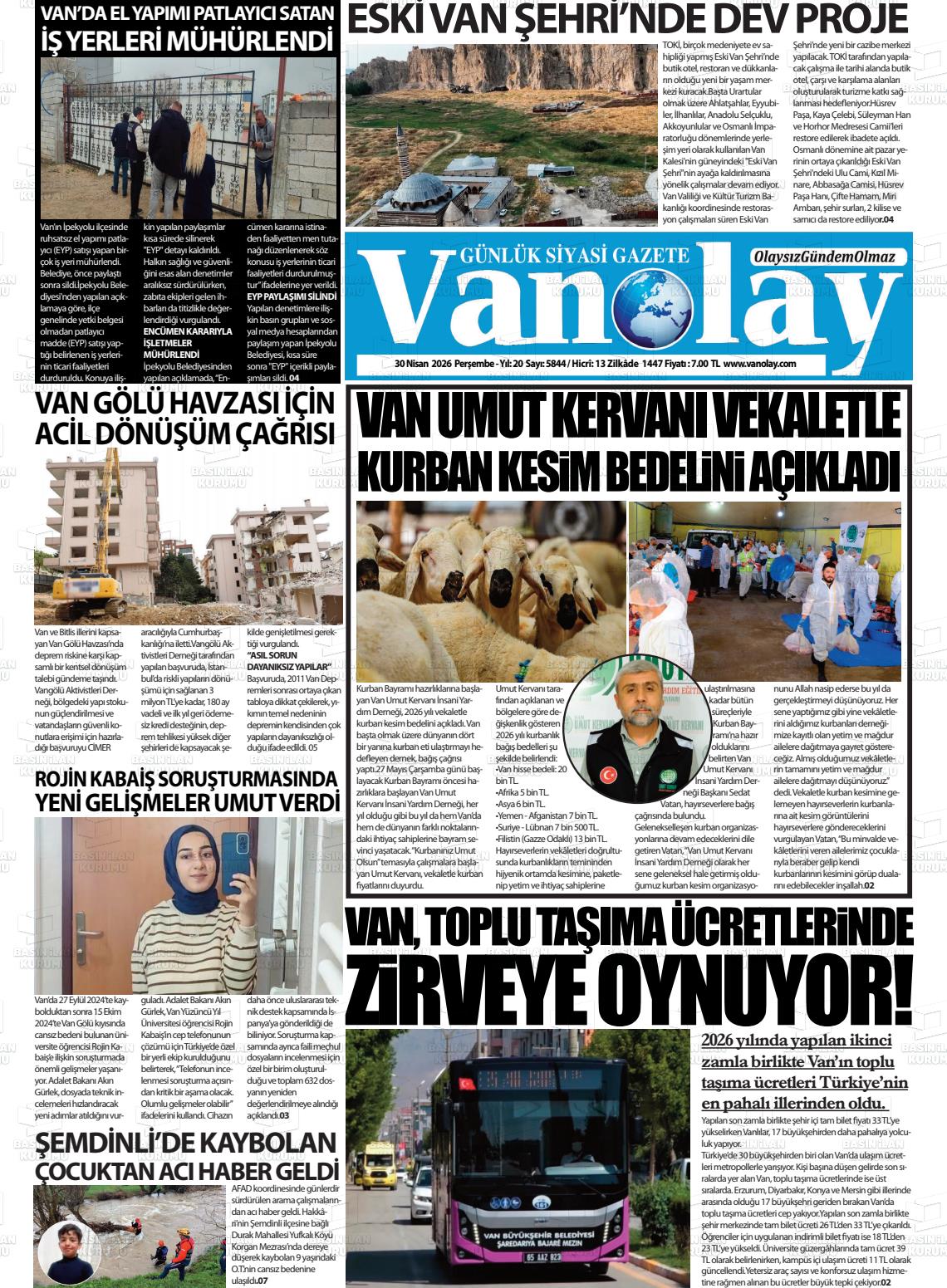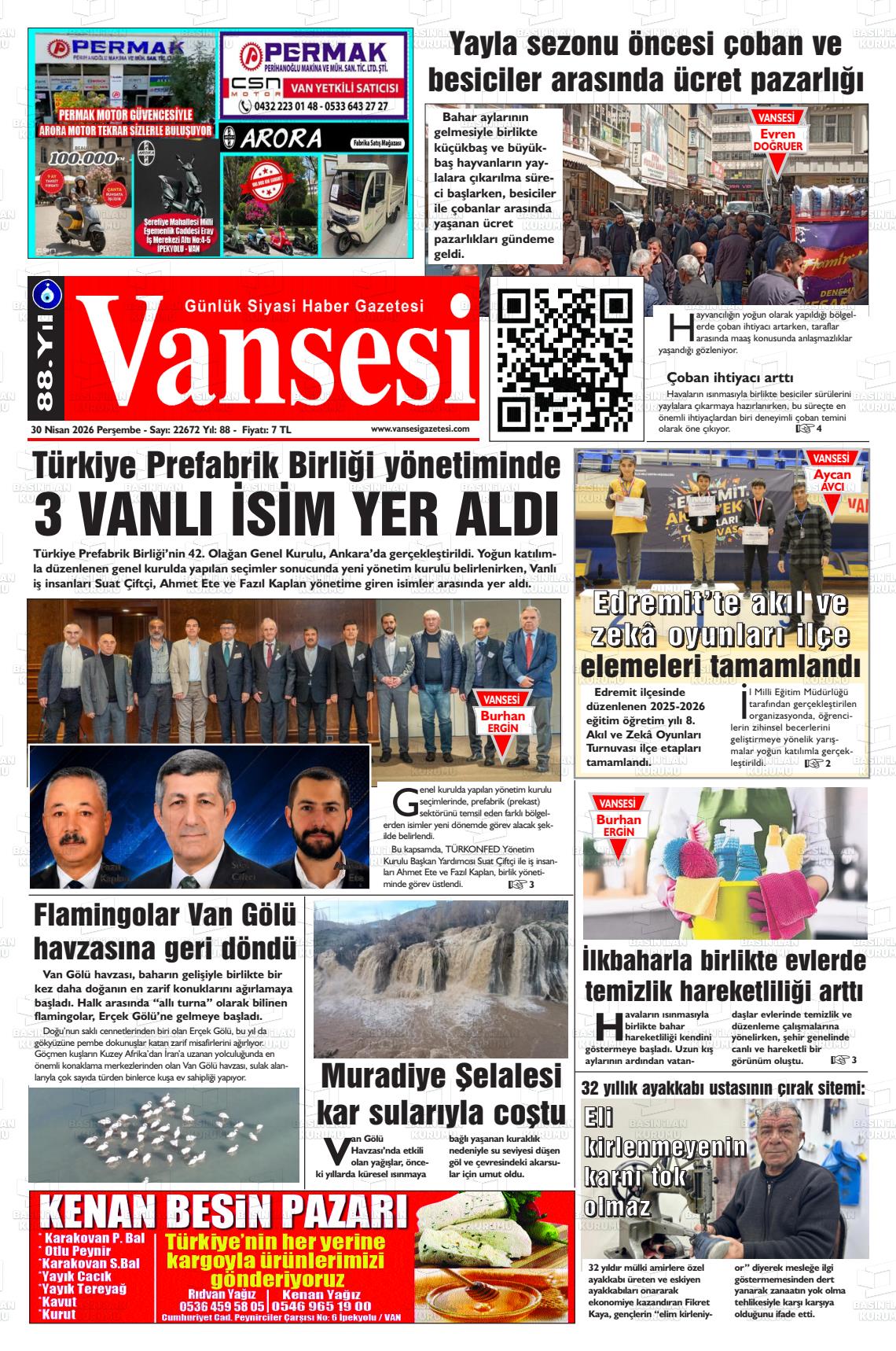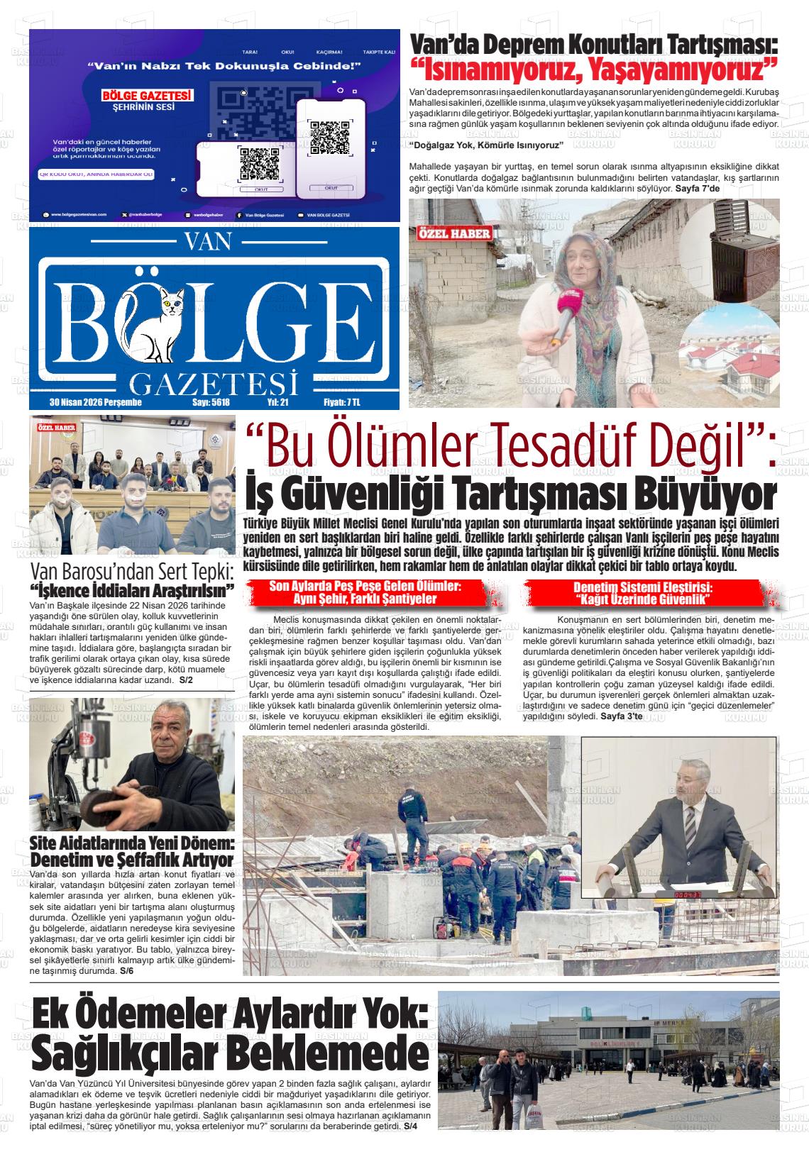 Van Yerel Gazeteleri 30 Nisan 2026, Perşembe Günü Manşeti