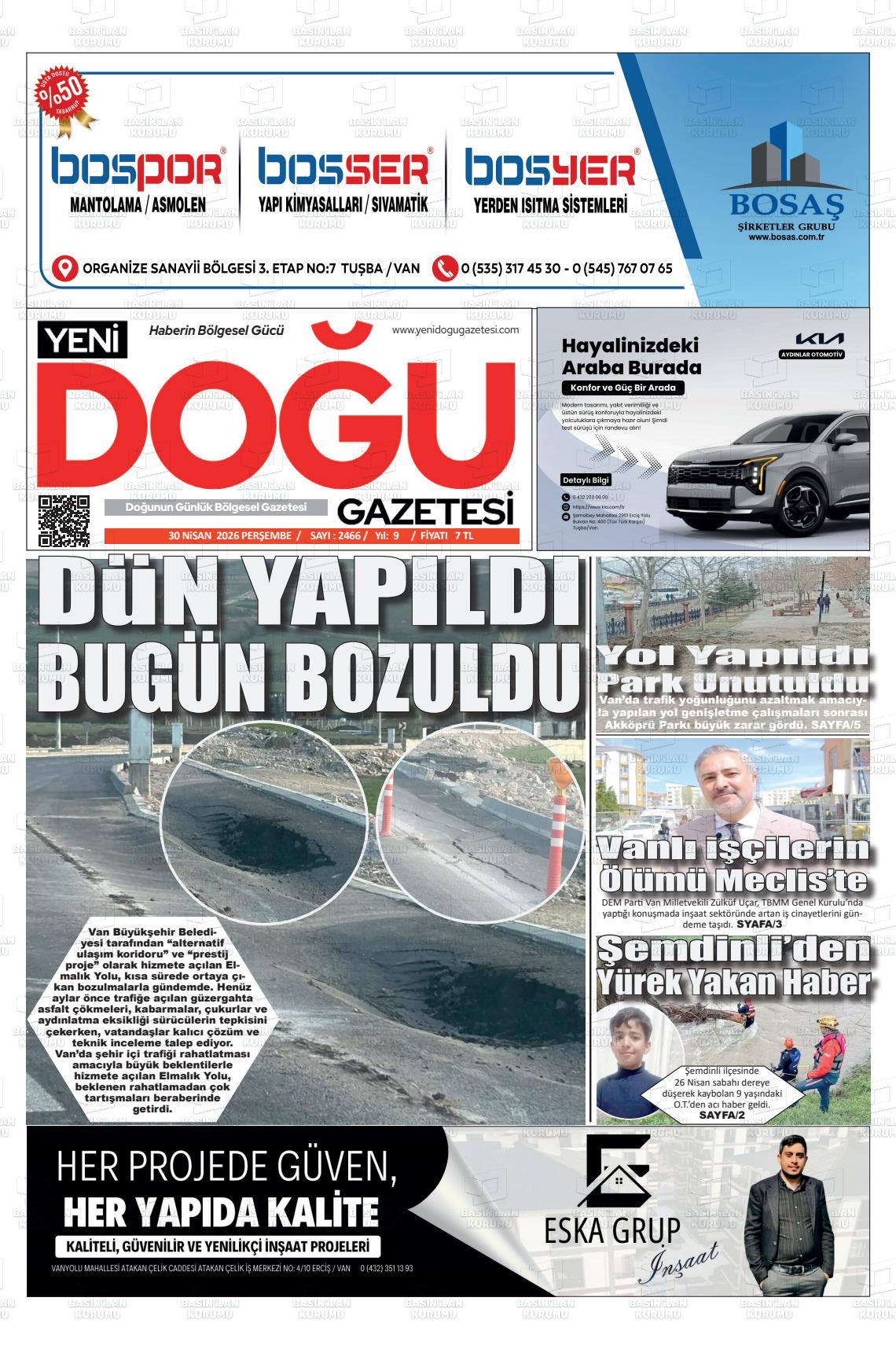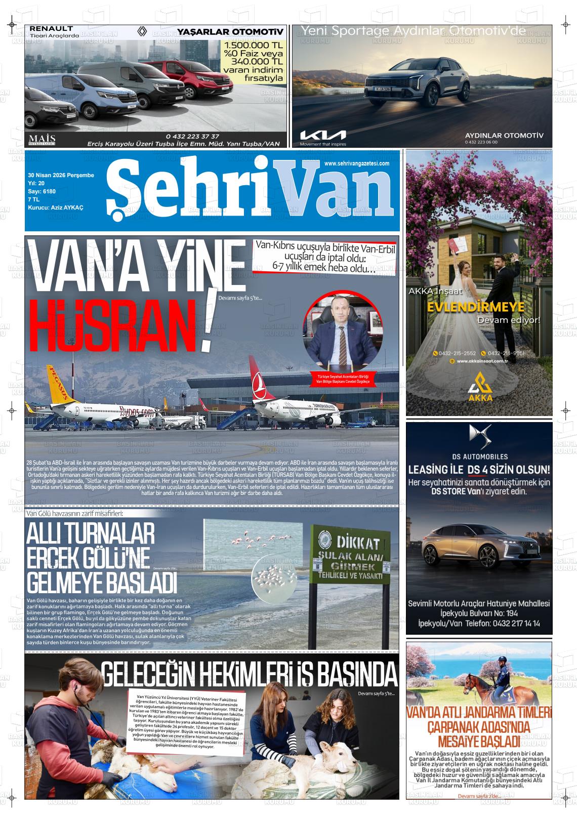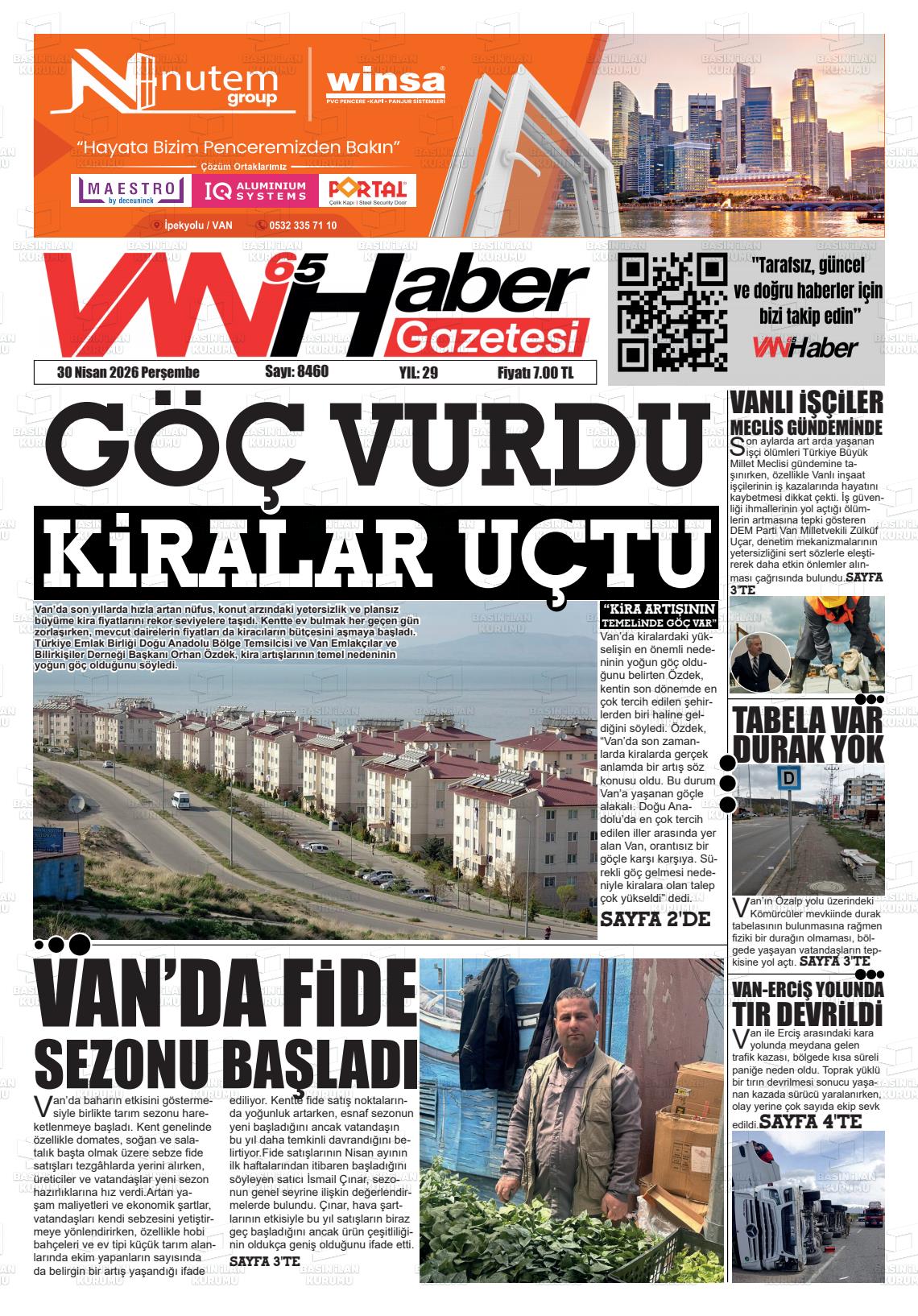 Van Yerel Gazeteleri 30 Nisan 2026, Perşembe Günü Manşeti