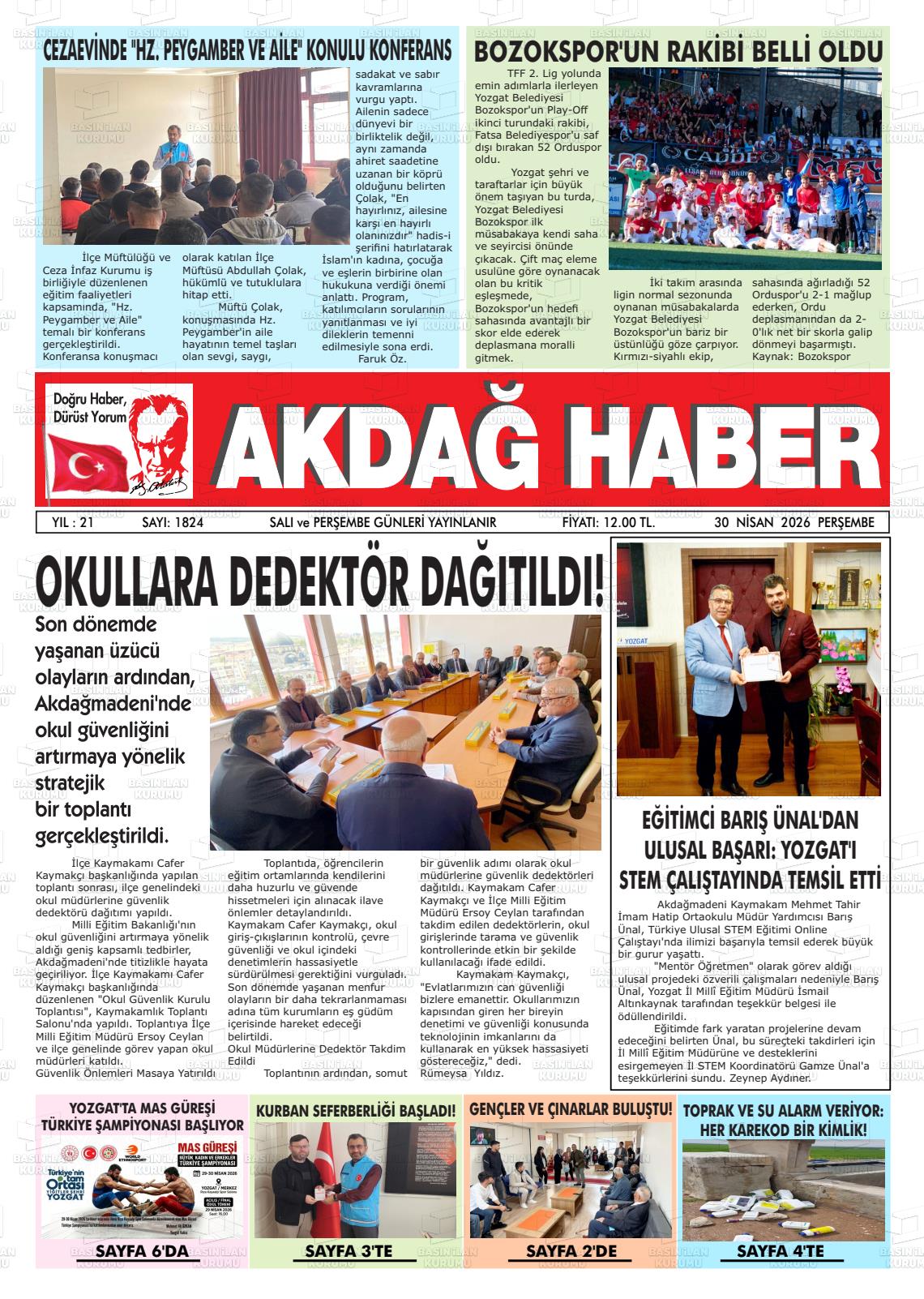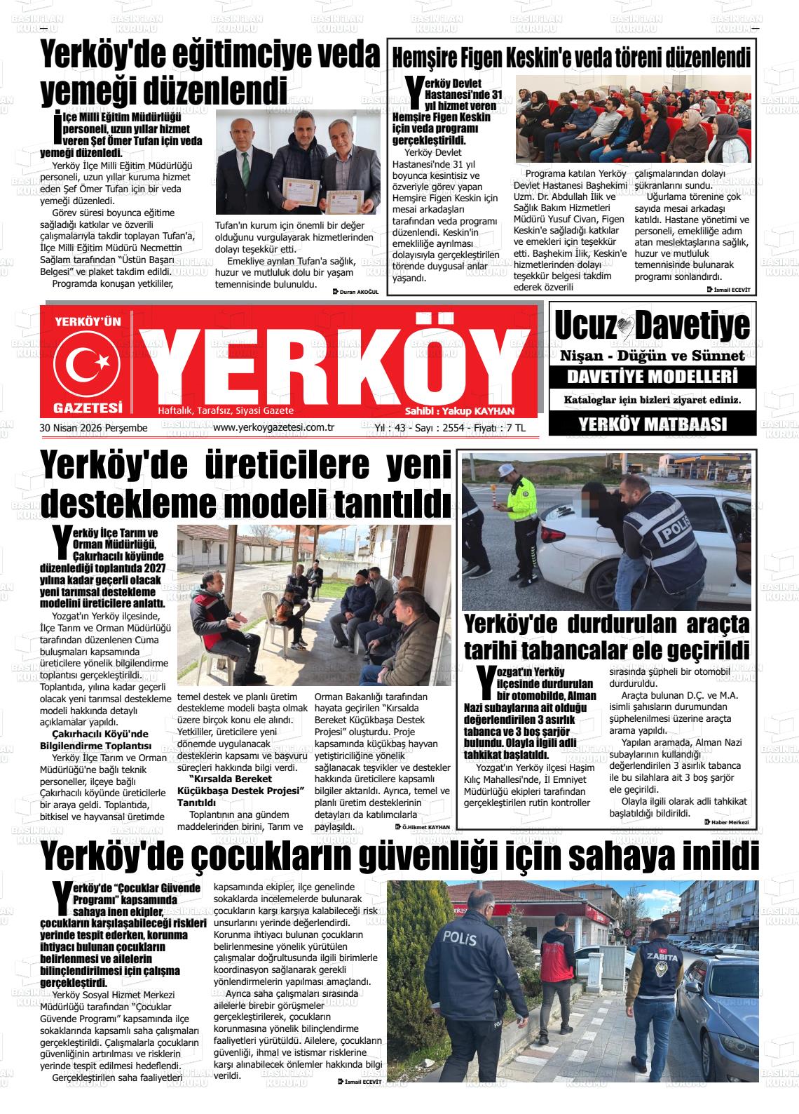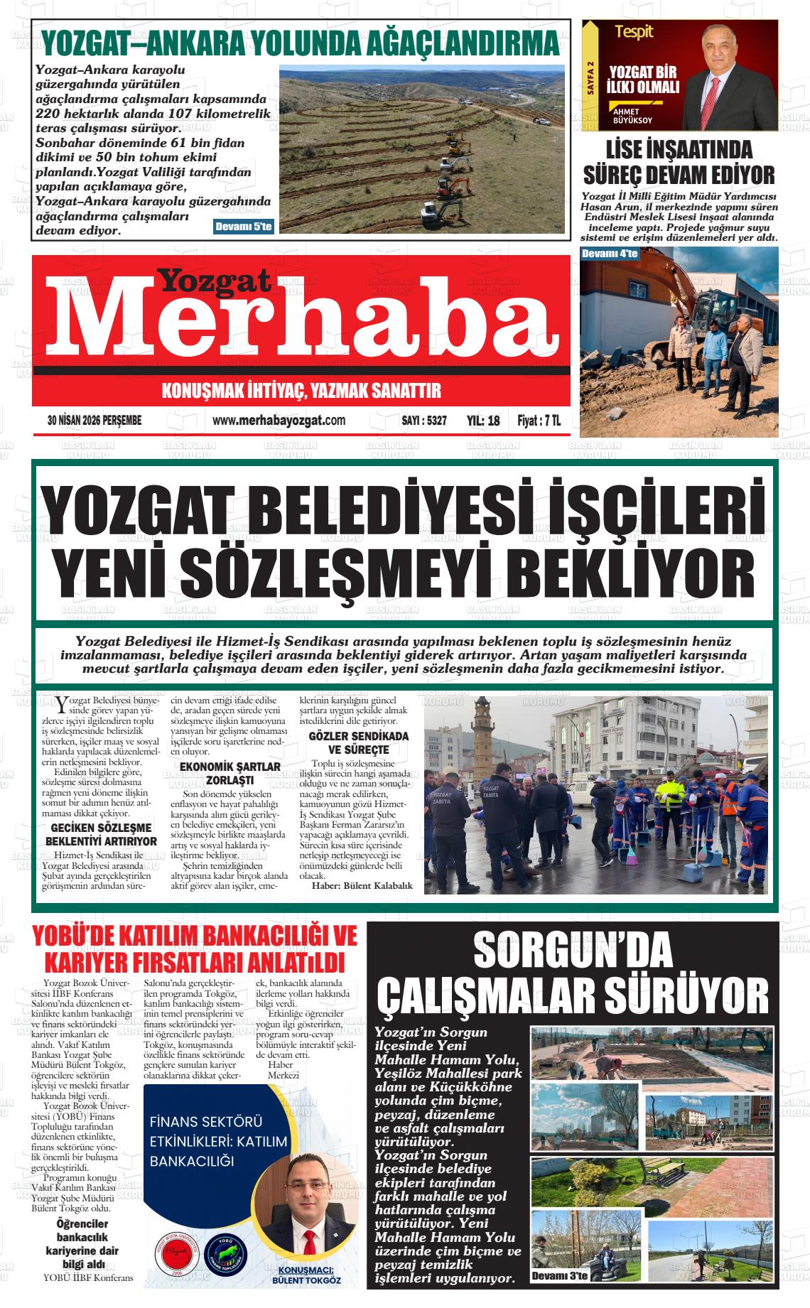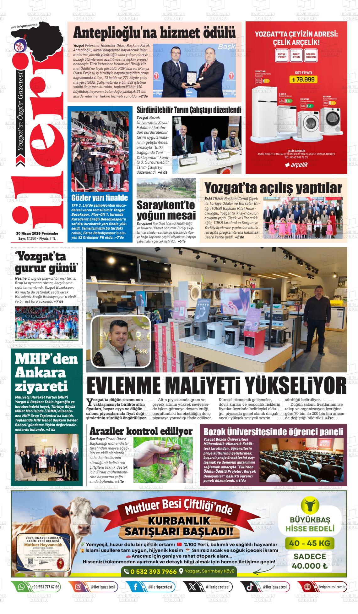 Yozgat Yerel Gazeteleri 30 Nisan 2026, Perşembe Günü Manşeti