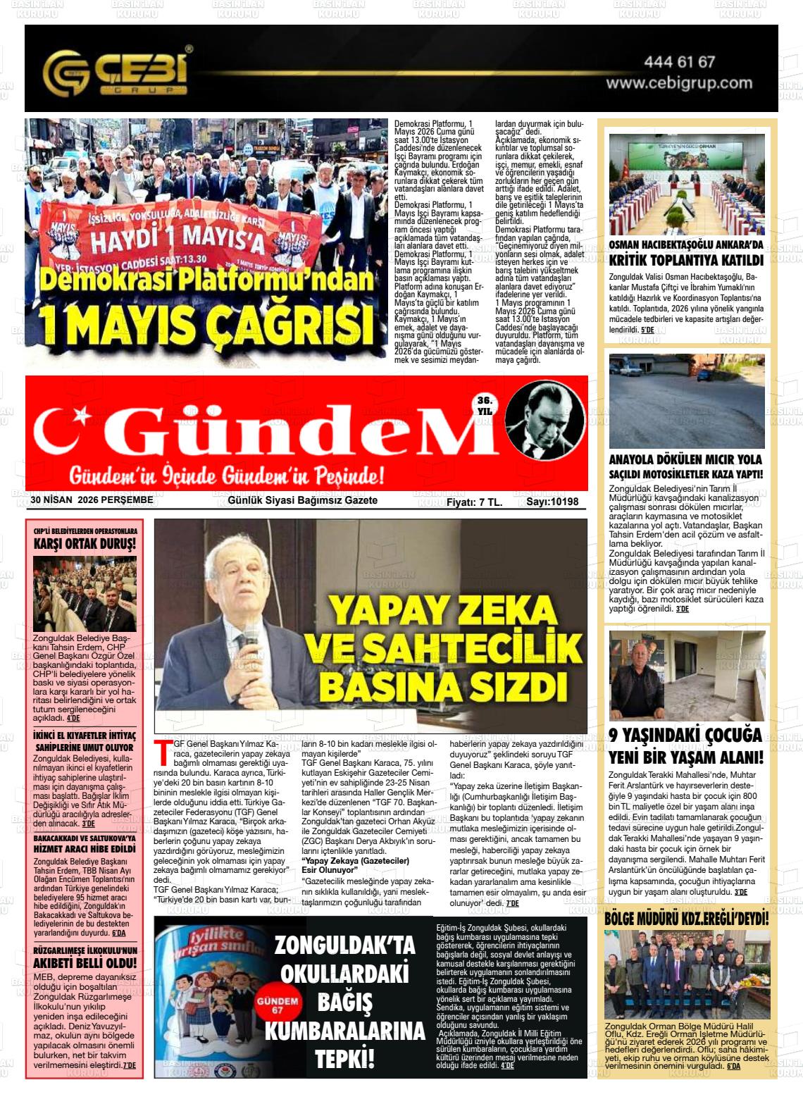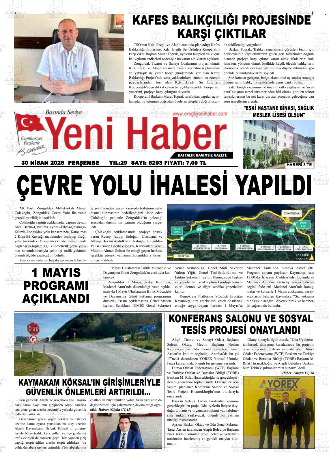 Zonguldak Yerel Gazeteleri 30 Nisan 2026, Perşembe Günü Manşeti