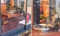 Sokak kedisi, dükkanda asılı haldeki döneri yedi