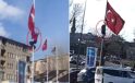 Rüzgarda dolanan bayrağı düzeltmek için 15 metrelik direğe tırmandı